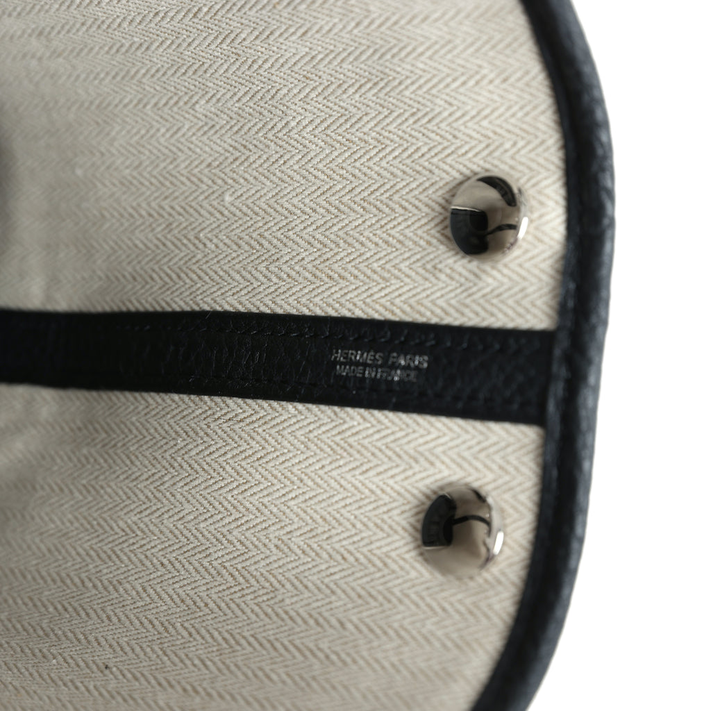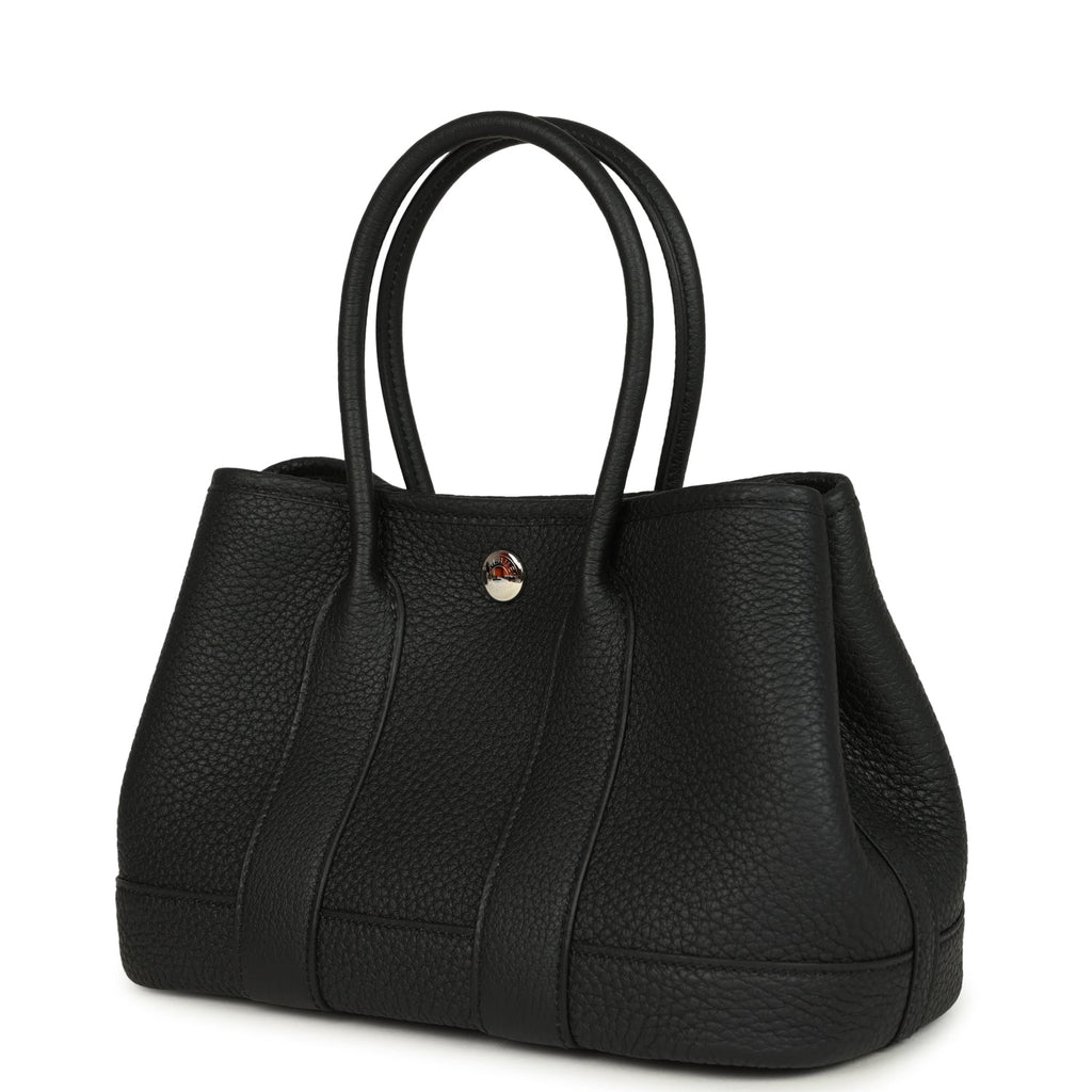 Hermes Garden Party Neo 23 Black Negonda Palladium Hardware Shop for an authentic Hermes Garden Party Neo 23 in Black Negonda leather with palladium hardware in new and never worn condition at Madison Avenue Couture.