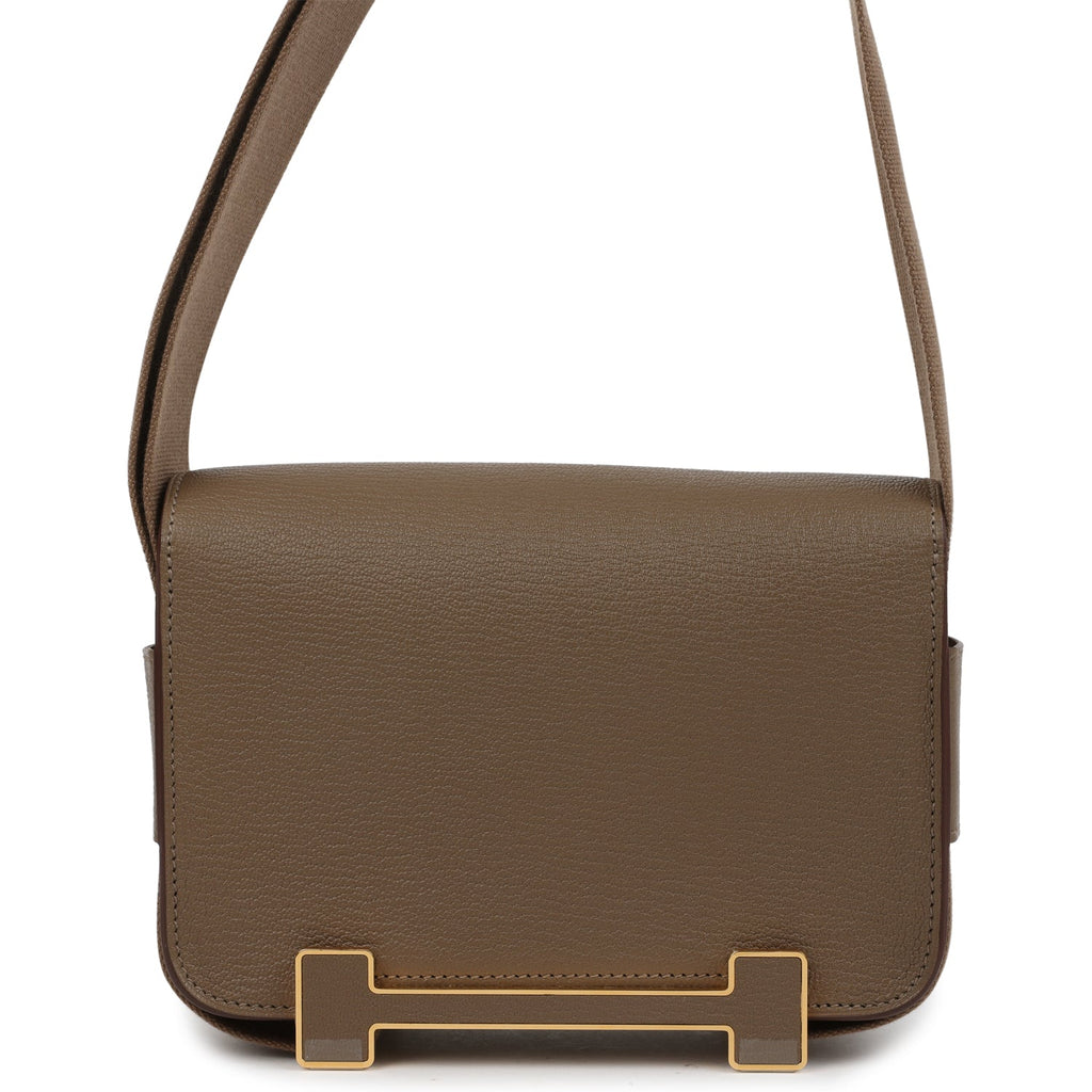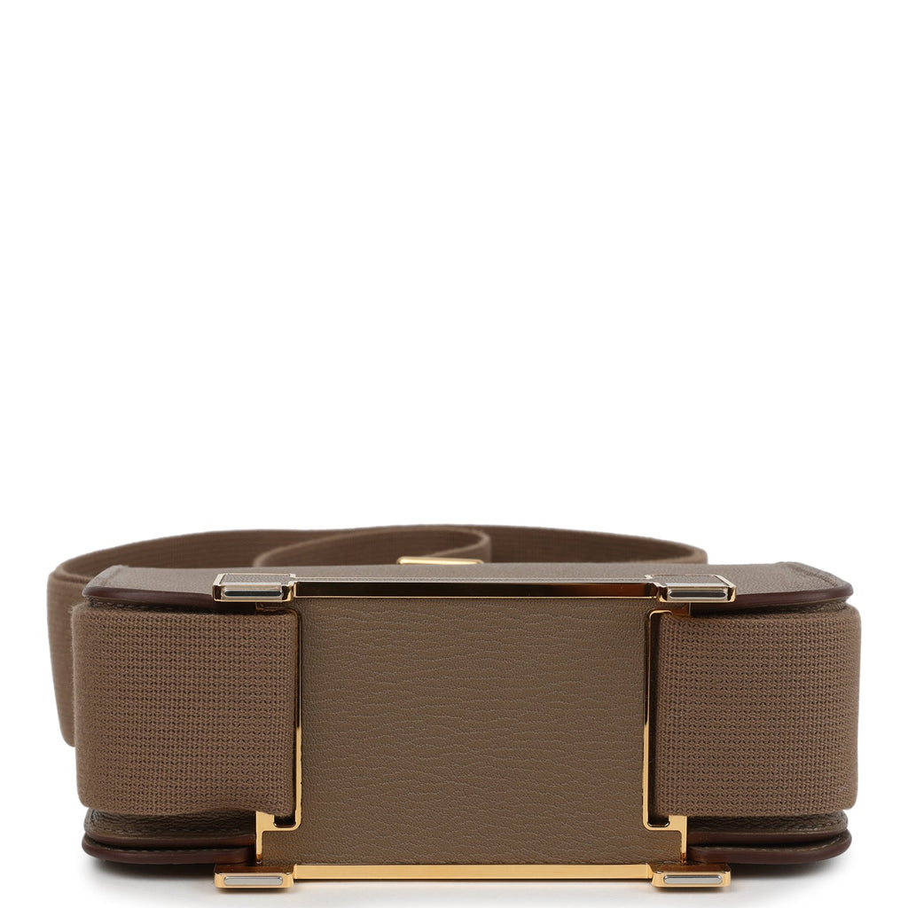 Hermes Geta Etoupe Chevre Mysore Gold Hardware Shop for an authentic Hermes Geta in Etoupe Chevre leather with gold hardware in new and never worn condition at Madison Avenue Couture.