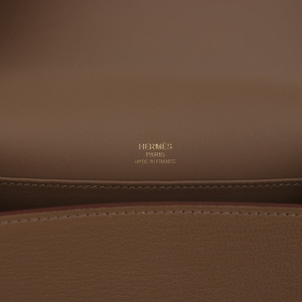 This Geta is in Etoupe chevre mysore leather with gold hardware and has tonal stitching, an Etoupe magnetic flap closure and adjustable shoulder strap.The interior is lined with Etoupe leather with one slip pocket on the back wall and two slip pockets on the front wall.Collection: W (2024)Origin: FranceCondition: New and never worn (plastic on hardware)Accompanied by: Hermes box, Hermes dustbag, carebook, ribbon and feltMeasurements: 8″ width x 5.5″ height x 2.5″ depth; 20″ strap