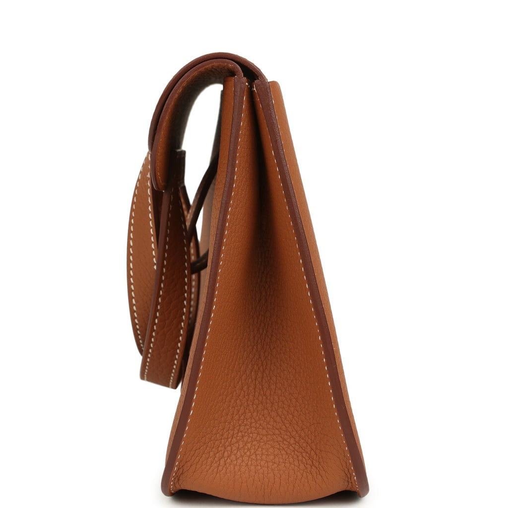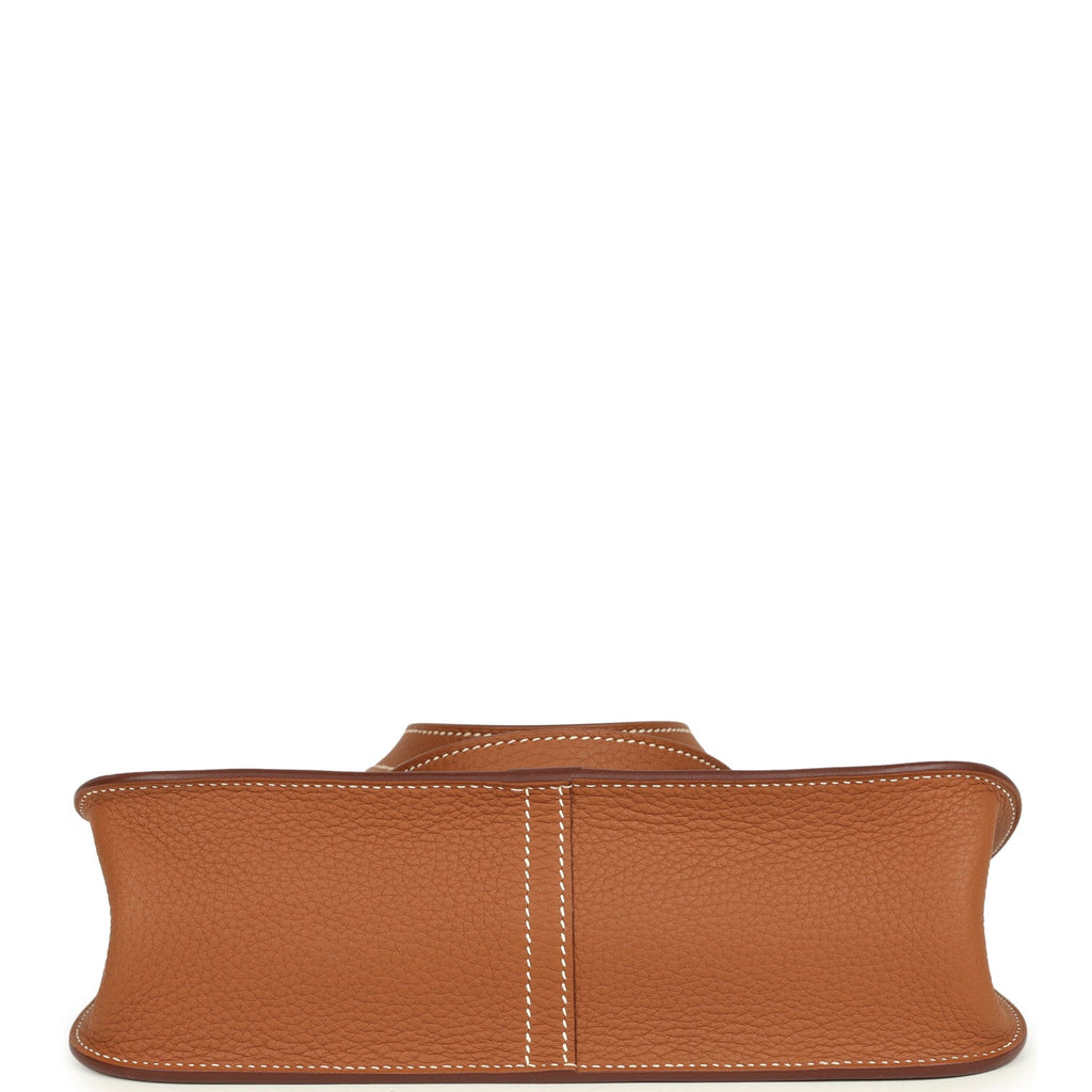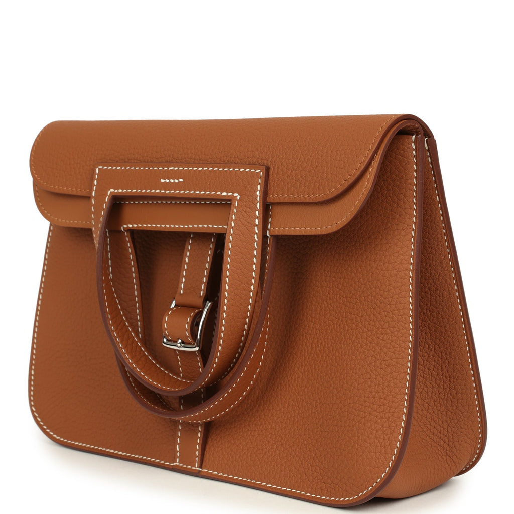Hermes Halzan 25 Gold Clemence Palladium Hardware Shop for an authentic Hermes Halzan 25 in Gold clemence with palladium hardware in new and never worn condition at Madison Avenue Couture.