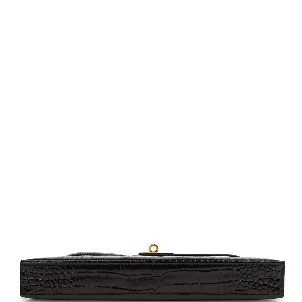 Hermes Kelly Elan Black Shiny Porosus Crocodile Gold Hardware Shop for an authentic Hermes Kelly Elan in Black Shiny Porosus Crocodile with gold hardware in new and never worn condition at Madison Avenue Couture.