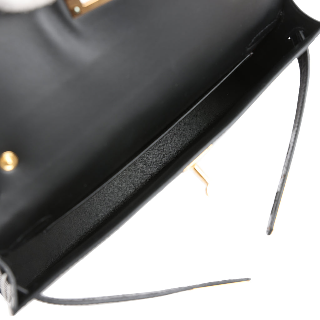 Hermes Kelly Elan Black Shiny Porosus Crocodile Gold Hardware