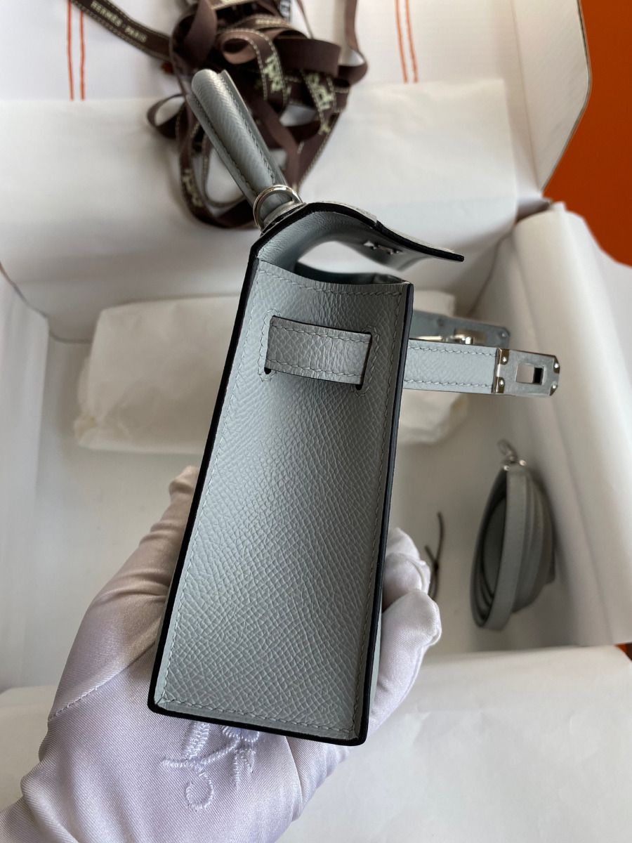 Hermes Kelly Mini II Sellier Handmade Bag In Blue Glacier Epsom Calfskin