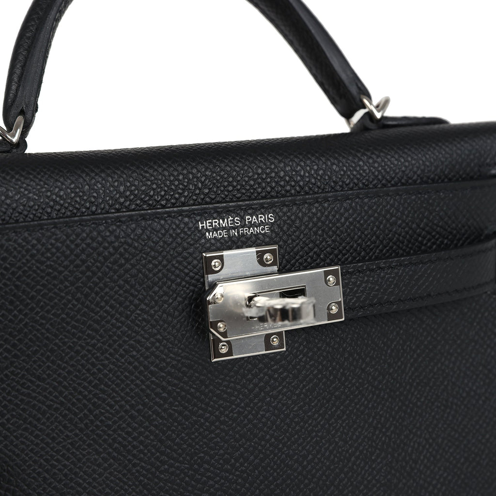 Hermes Kelly Sellier 20 Black Epsom Palladium Hardware Shop for an authentic Hermes Kelly Sellier 20 in Black epsom leather with palladium hardware in new and never worn condition at Madison Avenue Couture.