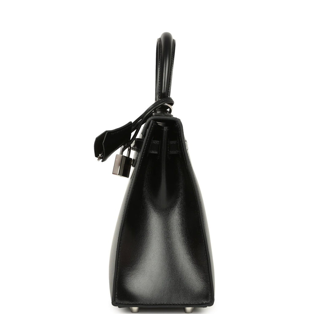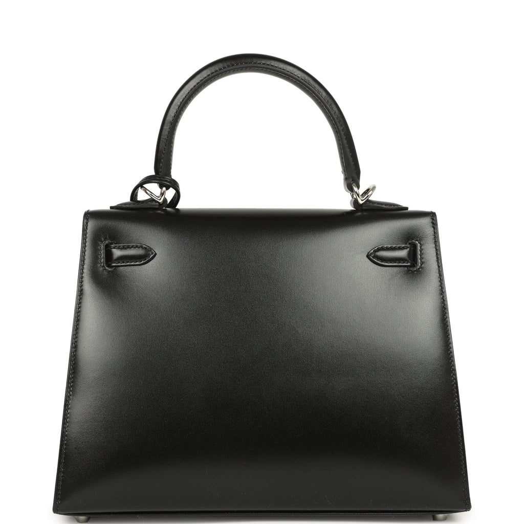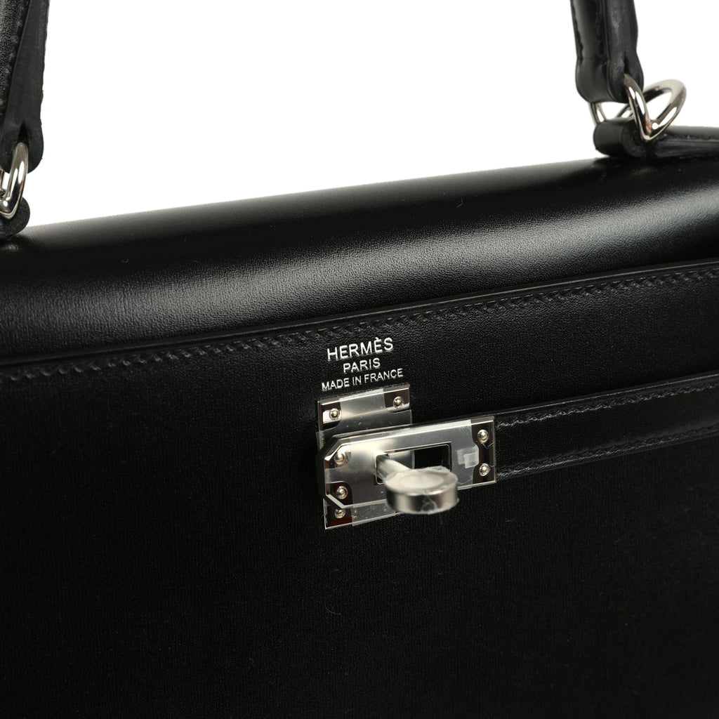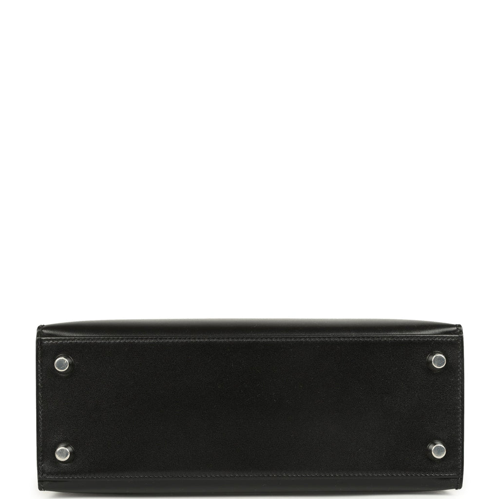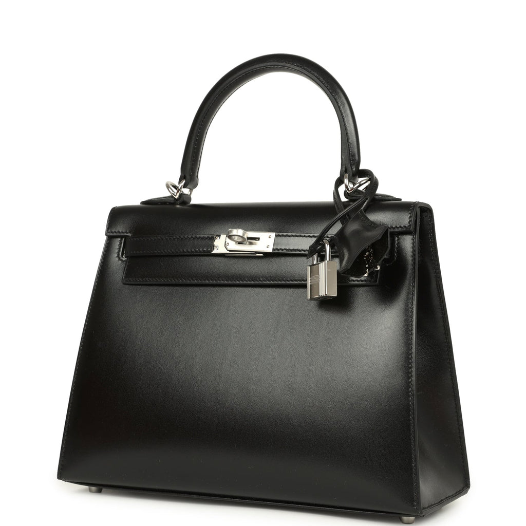 Hermes Kelly Sellier 25 Black Box Palladium Hardware Shop for an authentic Hermes Kelly 25 in Black box calf with gold hardware in new and never worn condition at Madison Avenue Couture.