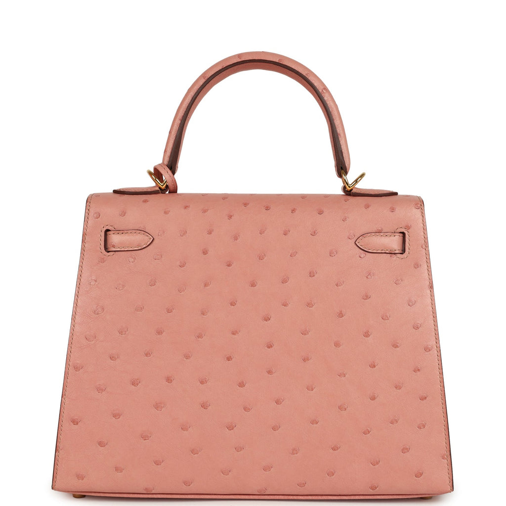 Hermes Kelly Sellier 25 Terre Cuite Ostrich Gold Hardware Shop for an authentic Hermes Kelly Sellier 25 in Terre Cuite ostrich leather with gold hardware in never worn condition at Madison Avenue Couture.
