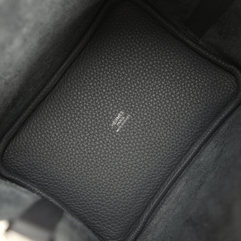 This Eclat Picotin Lock is in Ardoise clemence leather and Gris Pantin swift leather with Palladium hardware and has tonal stitching with two top handles, lock and two keys.The interior is lined with natural leather, no interior pockets and has a pull through closure secured by padlock.Collection: K (2025)Origin: FranceCondition: New and never worn (plastic on hardware)Accompanied by: Hermes box, Hermes dustbag, lock, two keys, lock and key dustbag, carebookMeasurements: 7″ width x 7.5″ height x 5.5″ depth; 5.5″ handles