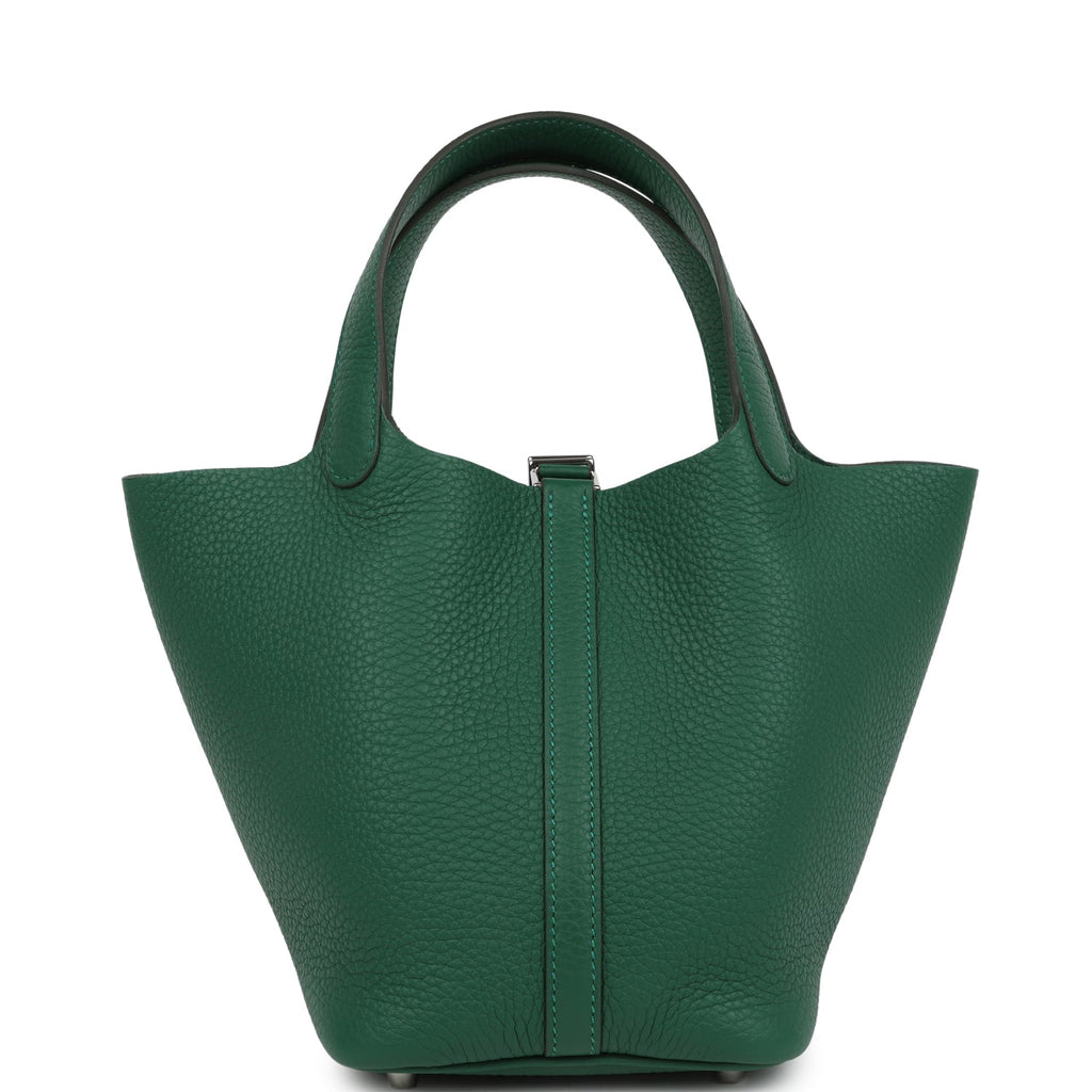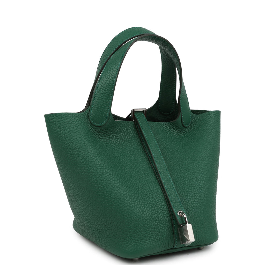 Hermes Picotin Lock 18 Vert Moyen Clemence Palladium Hardware Shop for an authentic Hermes Picotin Lock 18 in Vert Moyen clemence leather with palladium hardware in new and never worn condition at Madison Avenue Couture.