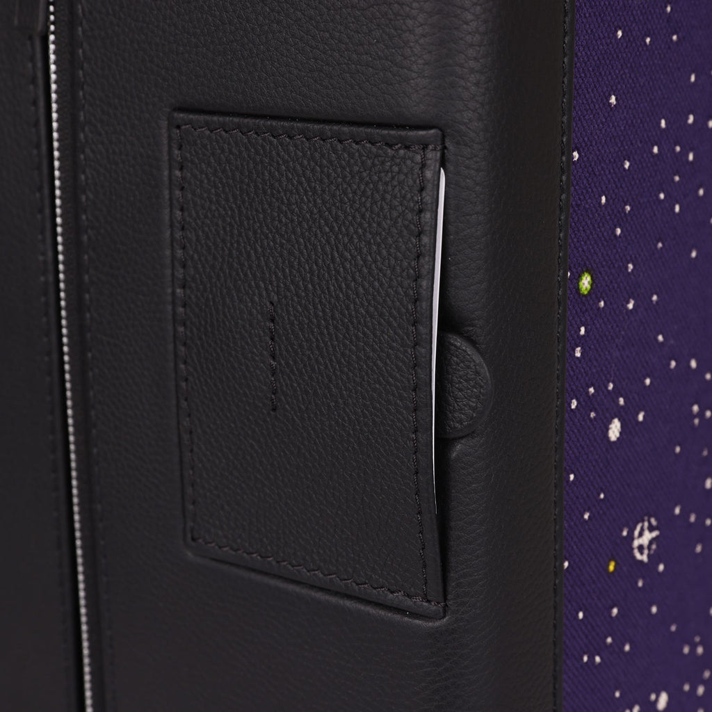 The Hermes R.M.S. Odyssey Cabine 55 Rolling Suitcase is in Ecru, Vert Amande, Bleu Nuit and Vert Vertigo canvas and clemence leather. This suitcase has a concealed handle that is retractable along with a small fabric top handle for a carry function. There are 4 black wheels, a palladium toned zipper, and a padlock for extra security. There is one backfacing zipper pocket on the exterior for additional storage of small goods. The interior is lined with grey fabric with an organizer bag. One side of the interior is open facing and the other side has a full zip closure to ensure safety and organization. Origin: FranceCondition: New and never worn Accompanied by: Hermes box and luggage cover Measurements: 19.25″ x 13.5″ x 7.25″; Retractable 13.5″ handle