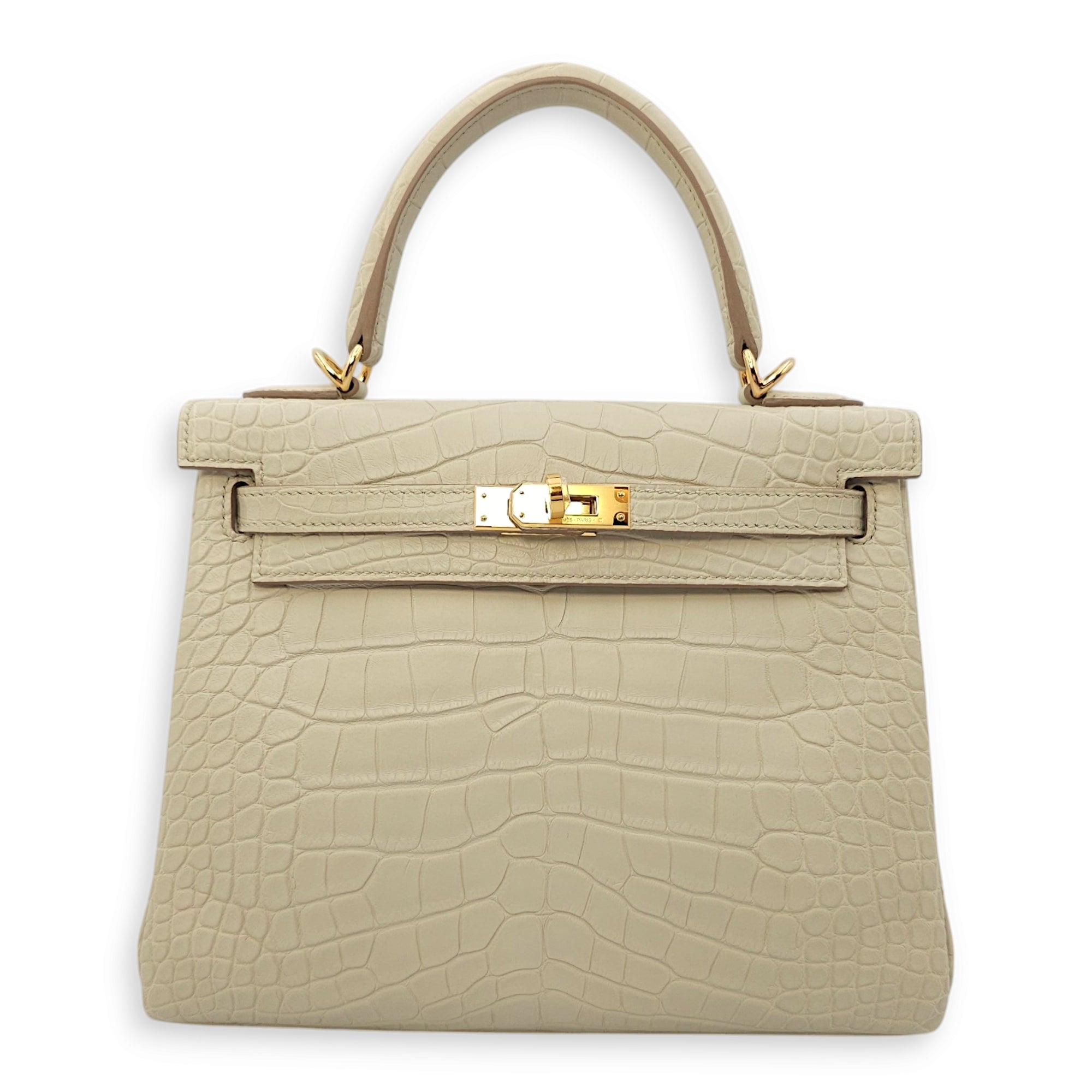 Be the first to review “Kelly 25 Beton in Matte Alligator, Gold hardware”