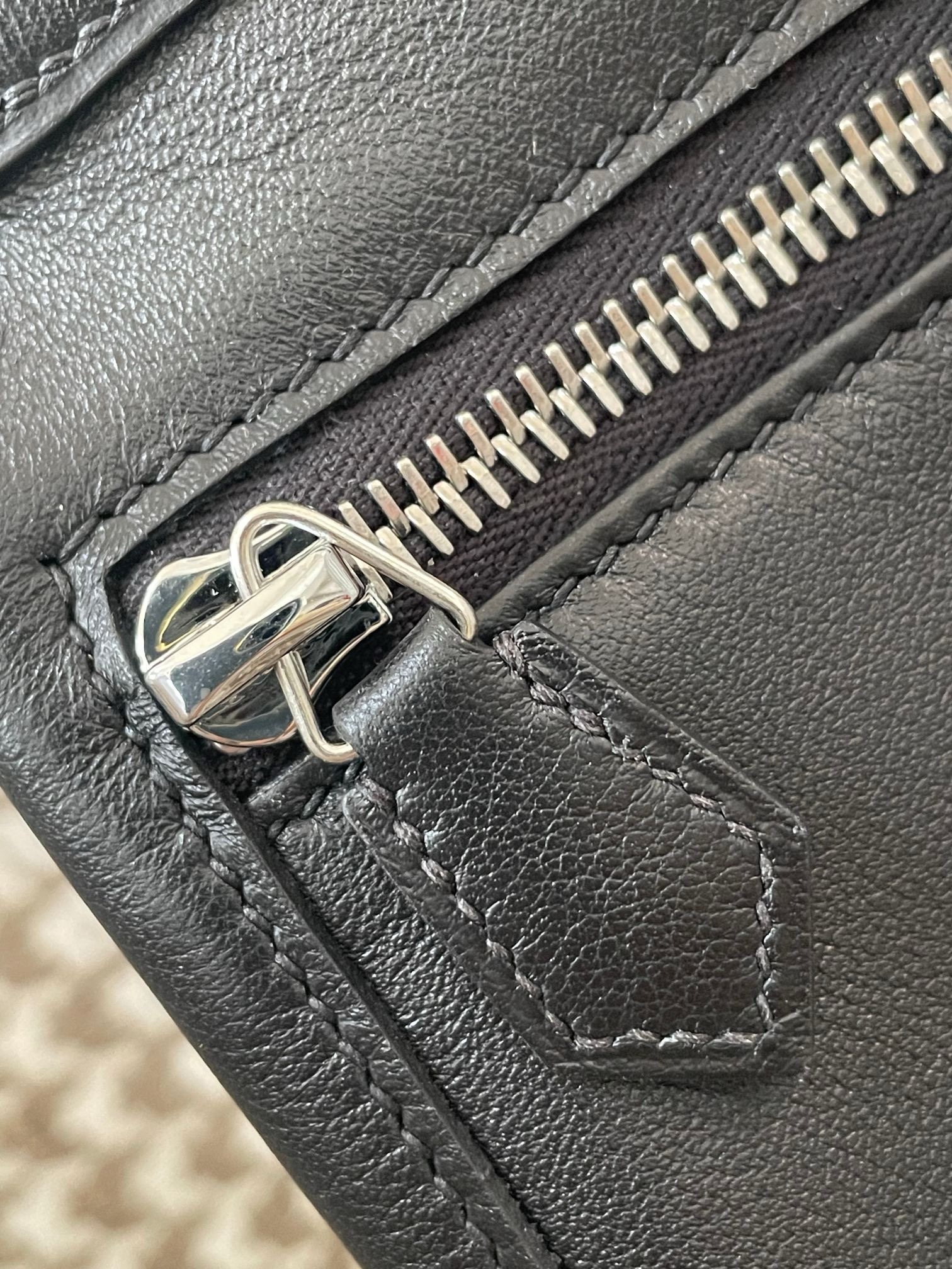 The interior is lined in chèvre leather.