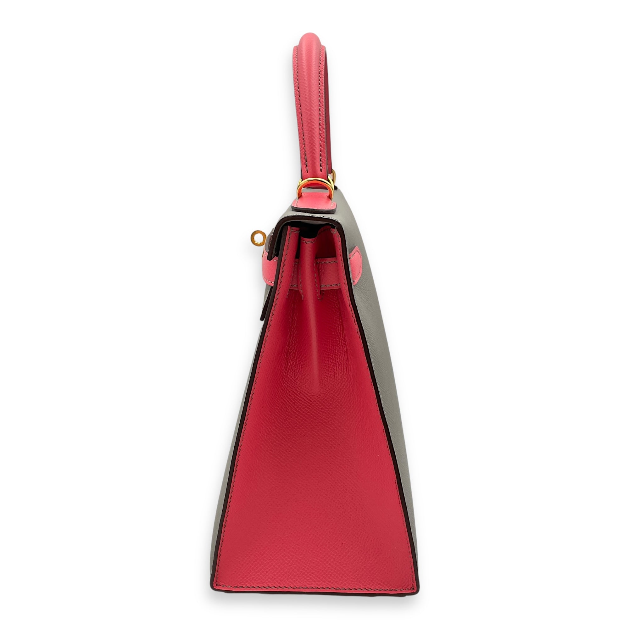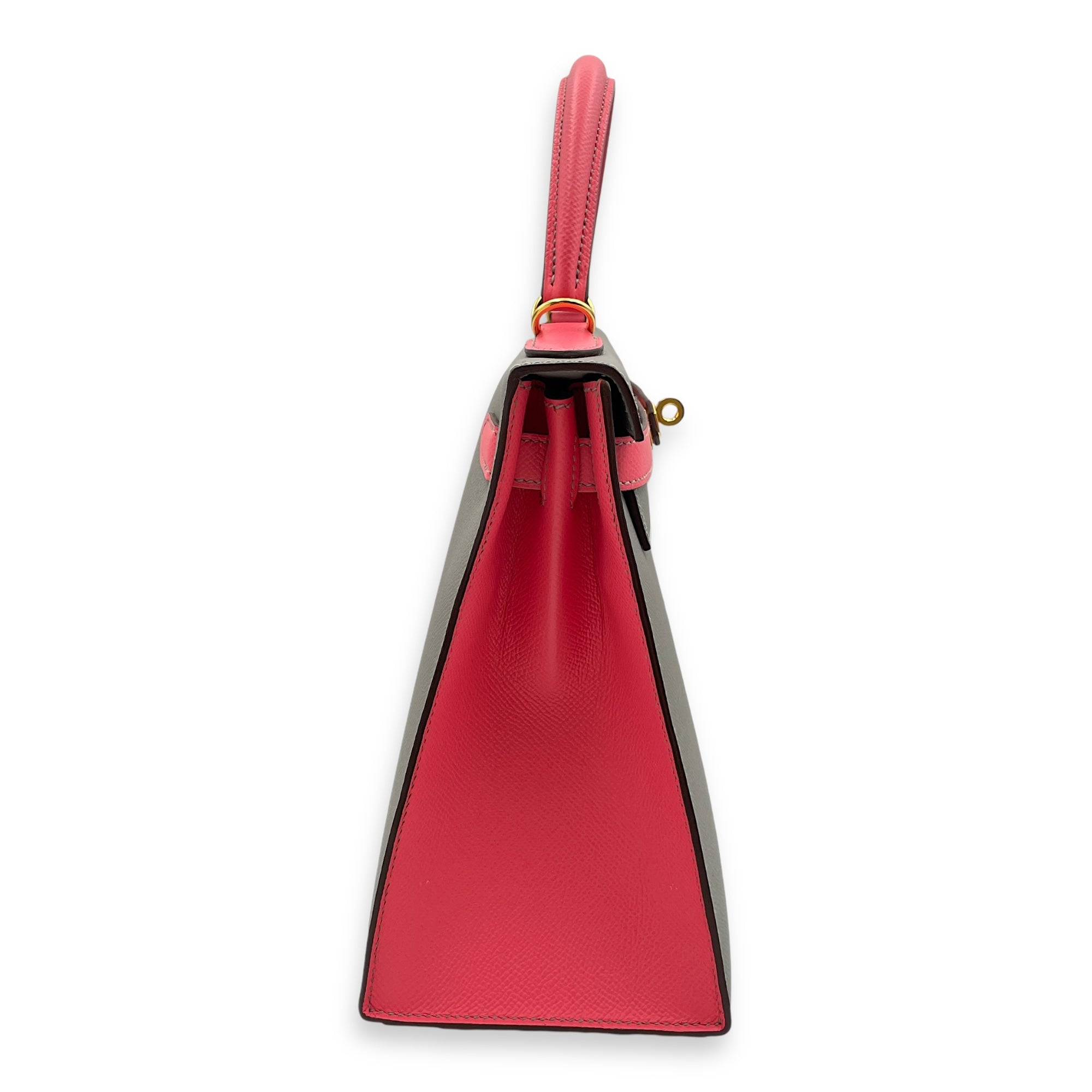 Kelly Sellier HSS 28 Gris Mouette/Rose Azalee in Epsom, Gold hardware