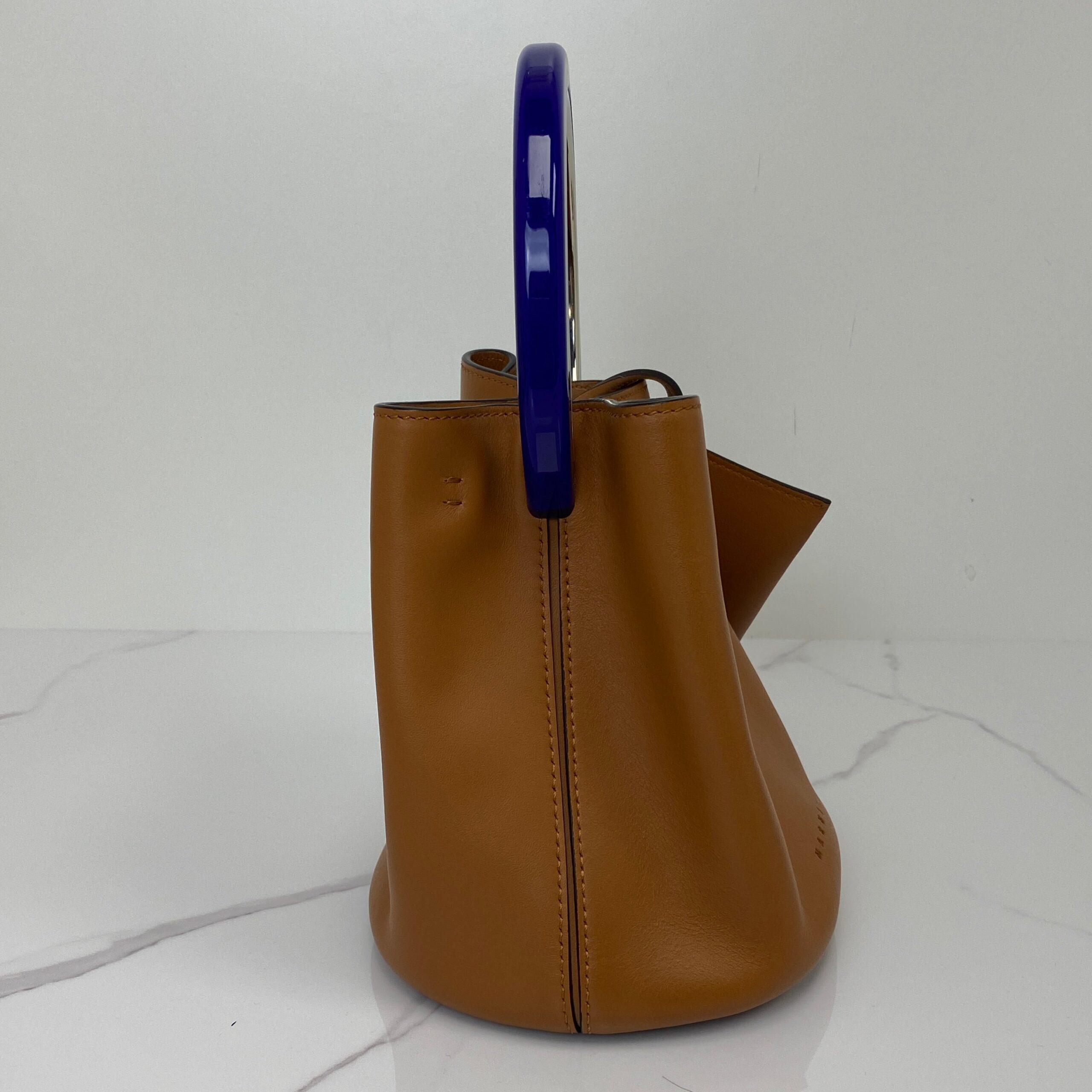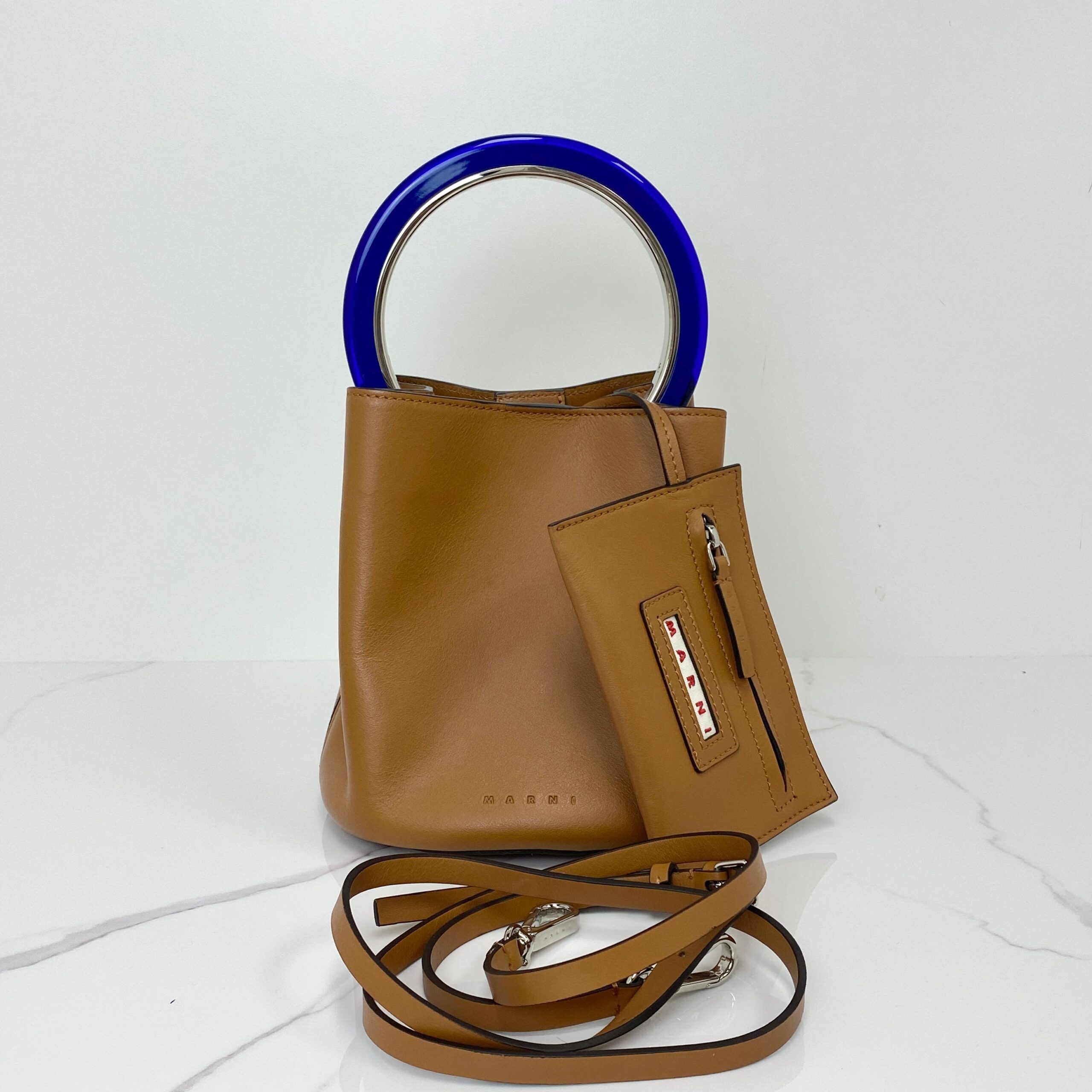 The Marni Pannier Bucket Bag in calfskin is a perfect blend of style and functionality. Its unique shape and luxurious leather make it an ideal accessory for both casual and chic outfits. Whether worn on the shoulder or carried by hand, this versatile bag adds a contemporary edge to any look.