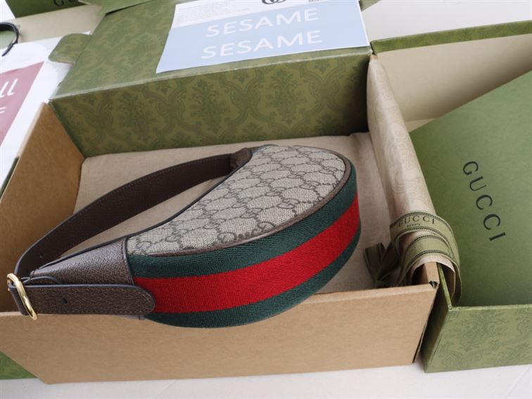 Ophidia GG mini bag with brown leather trim Beige and ebony GG Supreme canvas often boasting the distinctive Horsebit motif. The compact hemispherical style sits neatly under the arm from a short shoulder drop. And sports the label’s iconic GG supreme canvas and web-striped border.