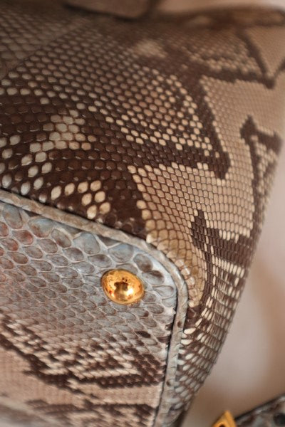 Prada Bicolor Python Cuir Medium Double Tote Bag