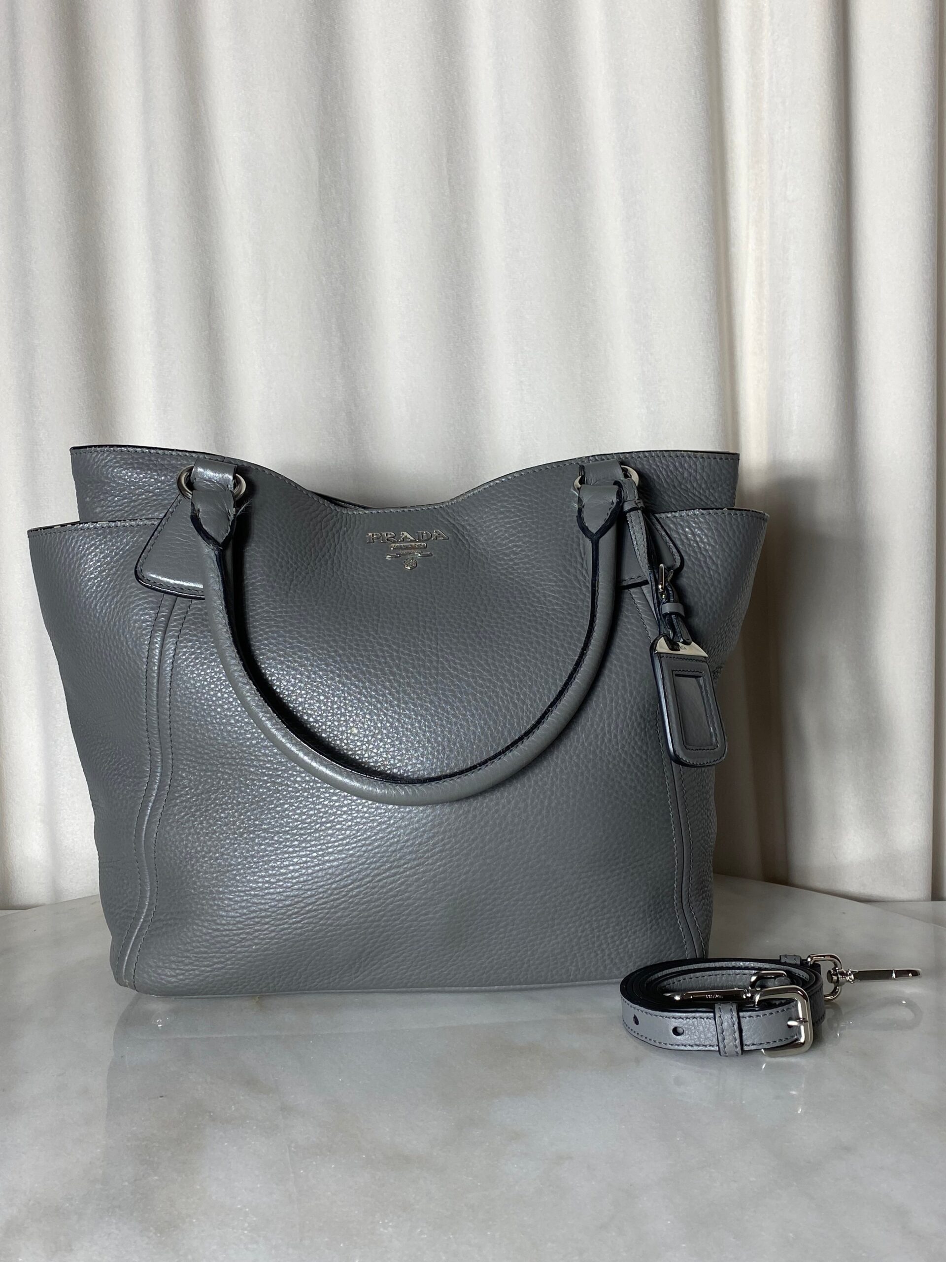 Prada Grey Vitello Daino Tote Bag W/ Charm