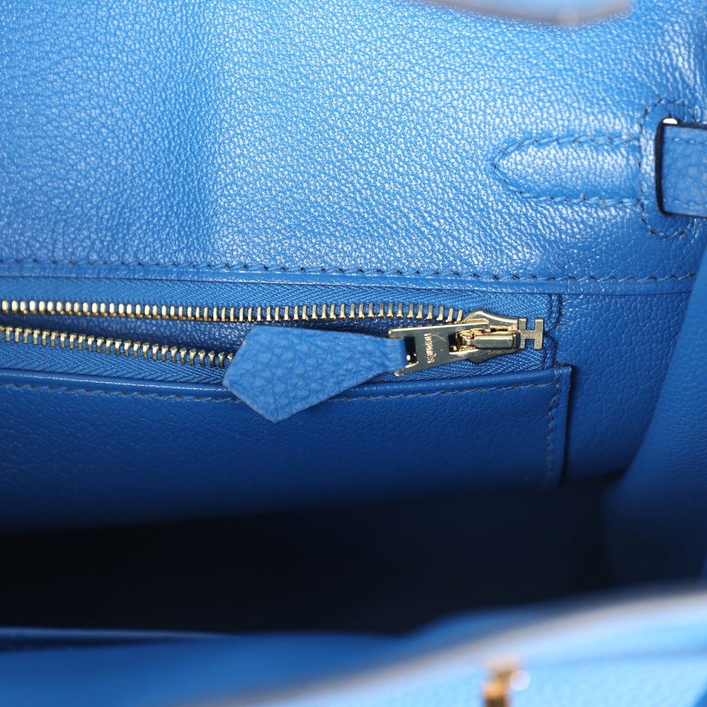 Pre-owned Hermes Birkin 25 Bleu Zellige Togo Gold Hardware Shop for an authentic pre-owned Hermes Birkin 25 in Bleu Zellige togo leather with gold hardware in excellent condition at Madison Avenue Couture.