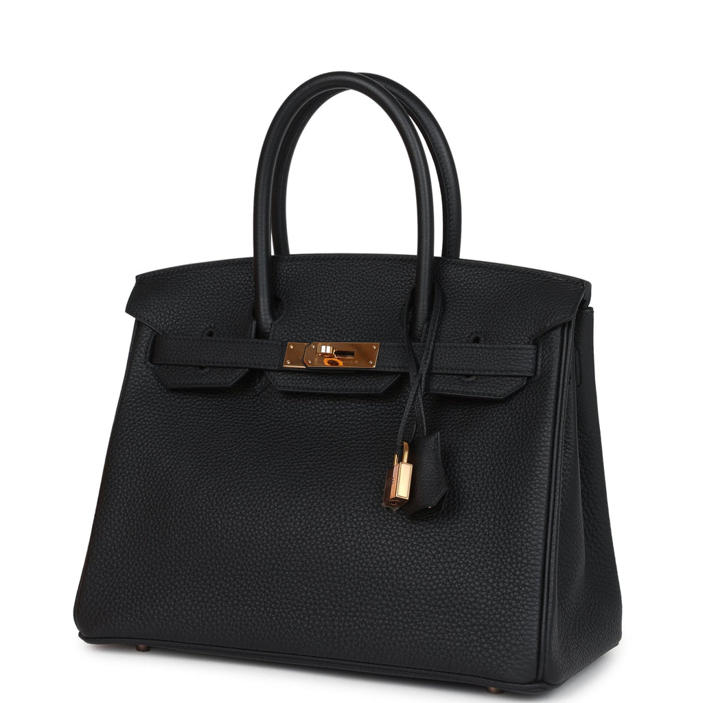 Pre-owned Hermes Birkin 30 Black Togo Rose Gold Hardware Shop for an authentic pre-owned Hermes Birkin 30 in Black togo leather with rose gold hardware in excellent condition at Madison Avenue Couture.