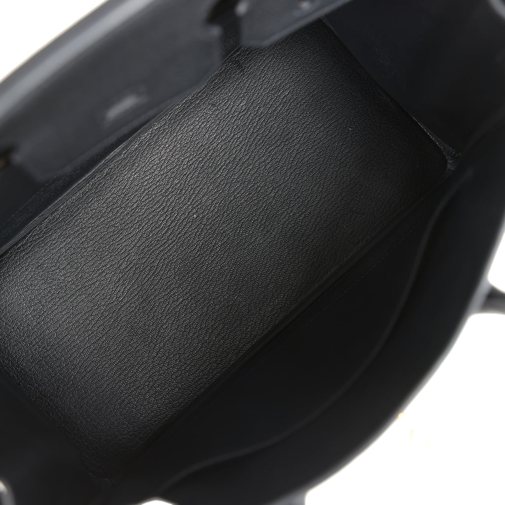 This Birkin is in Black togo leather with palladium hardware and has tonal stitching, front flap, two straps with center toggle closure, clochette with lock and two keys, and double rolled handles.The interior is lined with Black chevre and has one zip pocket with an Hermes engraved zipper pull and an open pocket on the opposite side.Collection: Y (2020)Origin: FranceCondition: Pre-owned; Excellent – This bag retain its shape structure. There is no plastic on the hardware. There are visible scratches to the exposed hardware and some tarnishing to the rose gold. The exterior leather is clean with no signs of wear except the back of the bag has a small area near the bottom where the texture is slightly smoother than the rest of the leather. The lock and keys are also tarnished. The interior leather has some light press marks to the interior base.Accompanied by: Hermes box (pre-owned), Hermes dustbag, lock, two keys, clochette, clochette dustbag, felt, carebook, rainhatMeasurements: 11.75″ width x 9.5″ height x 8″ depth; 4.25″ handle drop
