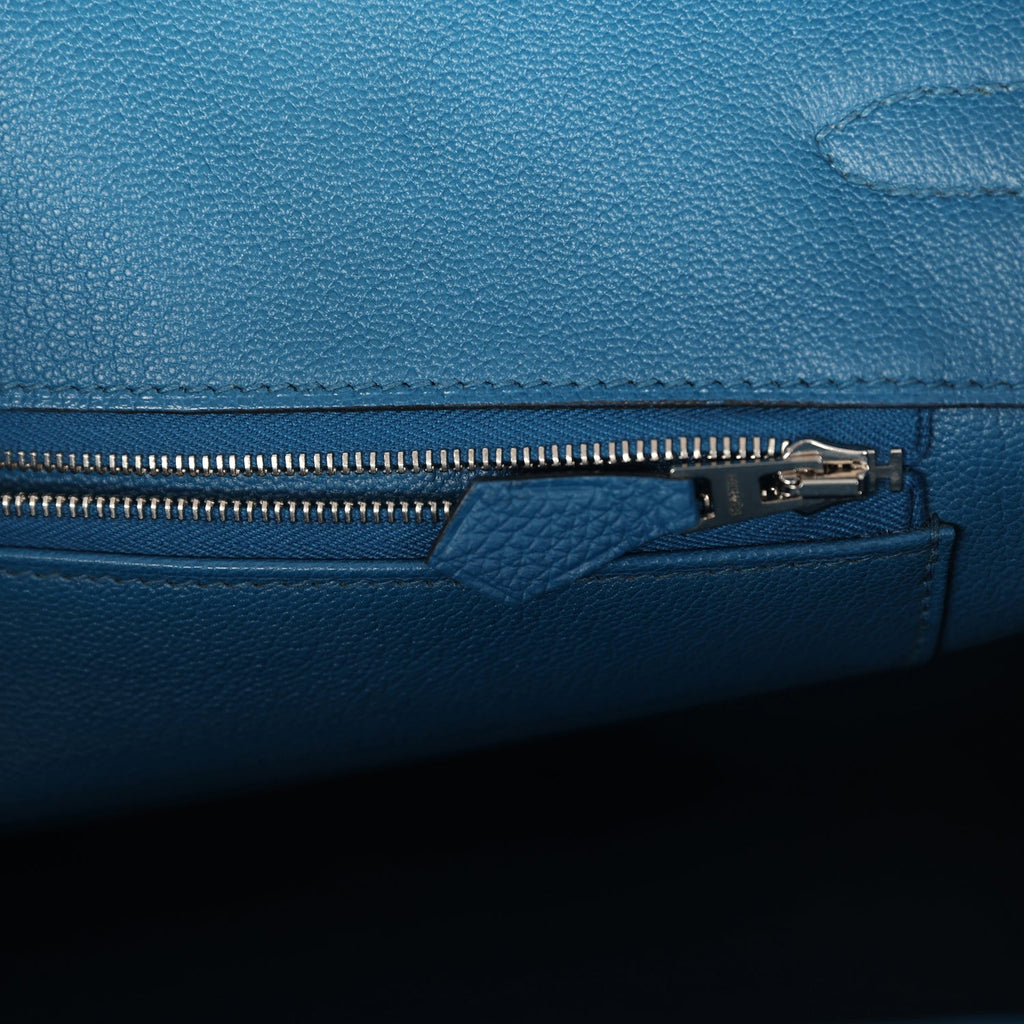 Pre-owned Hermes Birkin 35 Bleu de Galice Togo Palladium Hardware Shop for an authentic pre-owned Hermes Birkin 35 in Bleu de Galice togo leather with palladium hardware in excellent condition at Madison Avenue Couture.