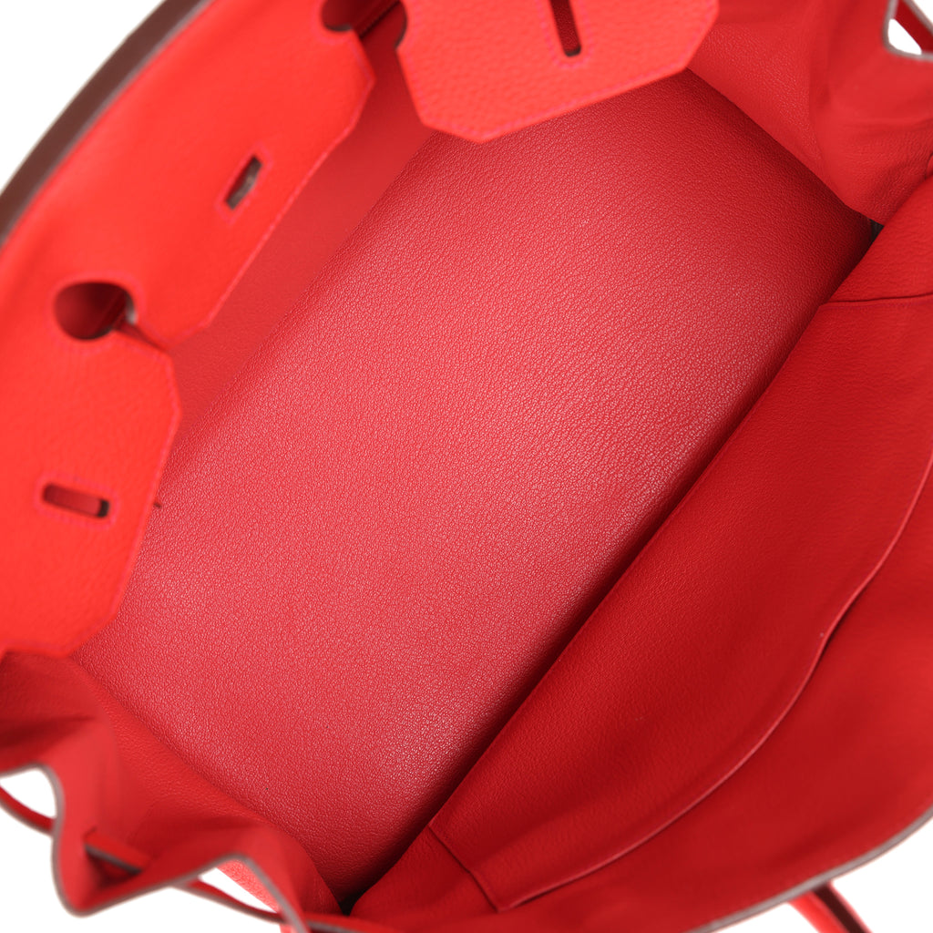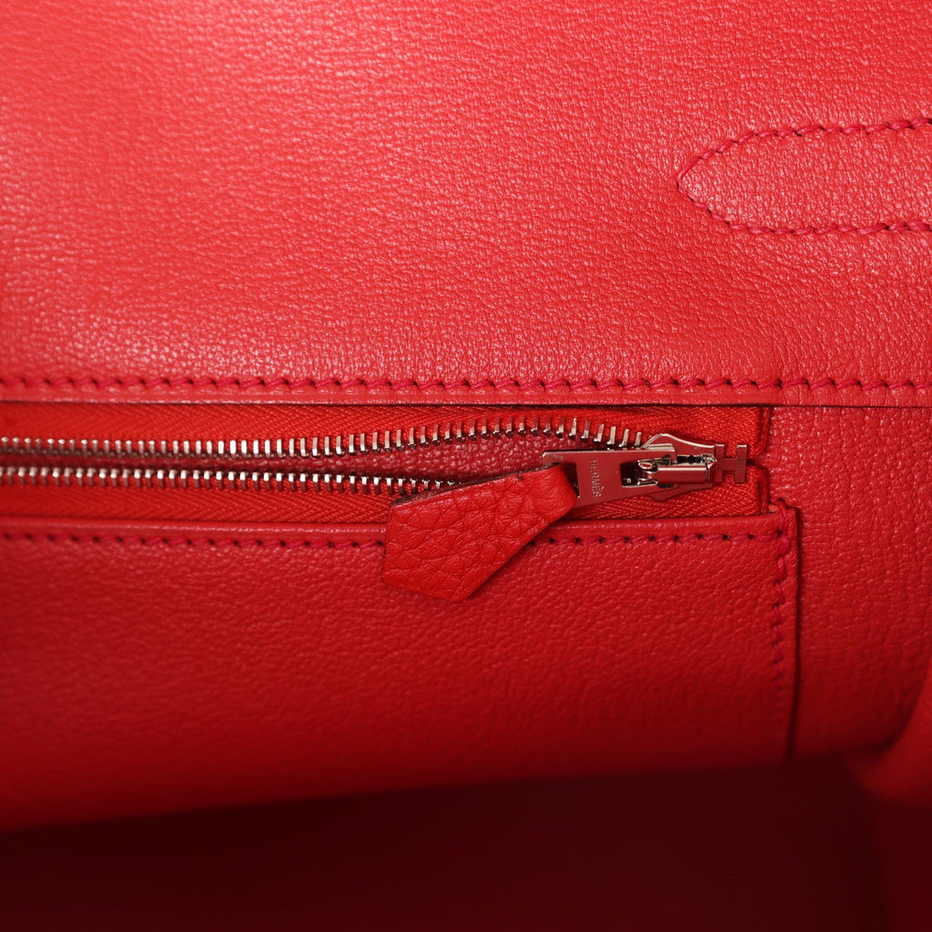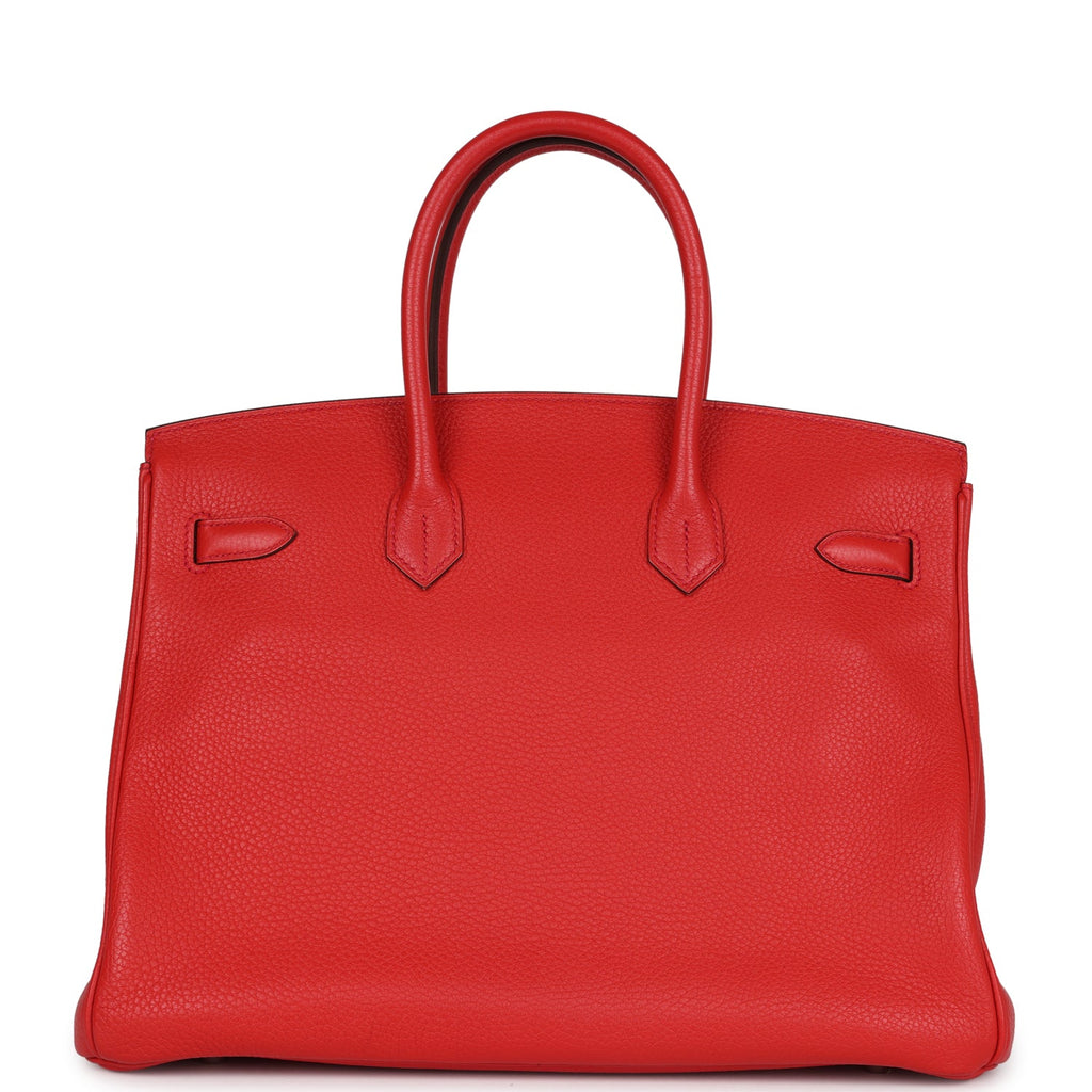 Pre-owned Hermes Birkin 35 Geranium Togo Palladium Hardware Shop for an authentic Hermes Birkin 35 in Geranium togo leather with palladium hardware in excellent condition at Madison Avenue Couture.