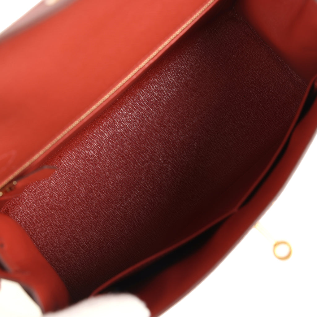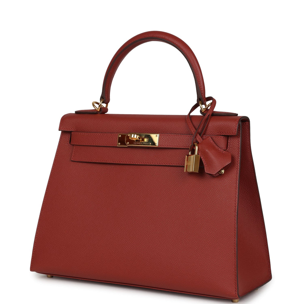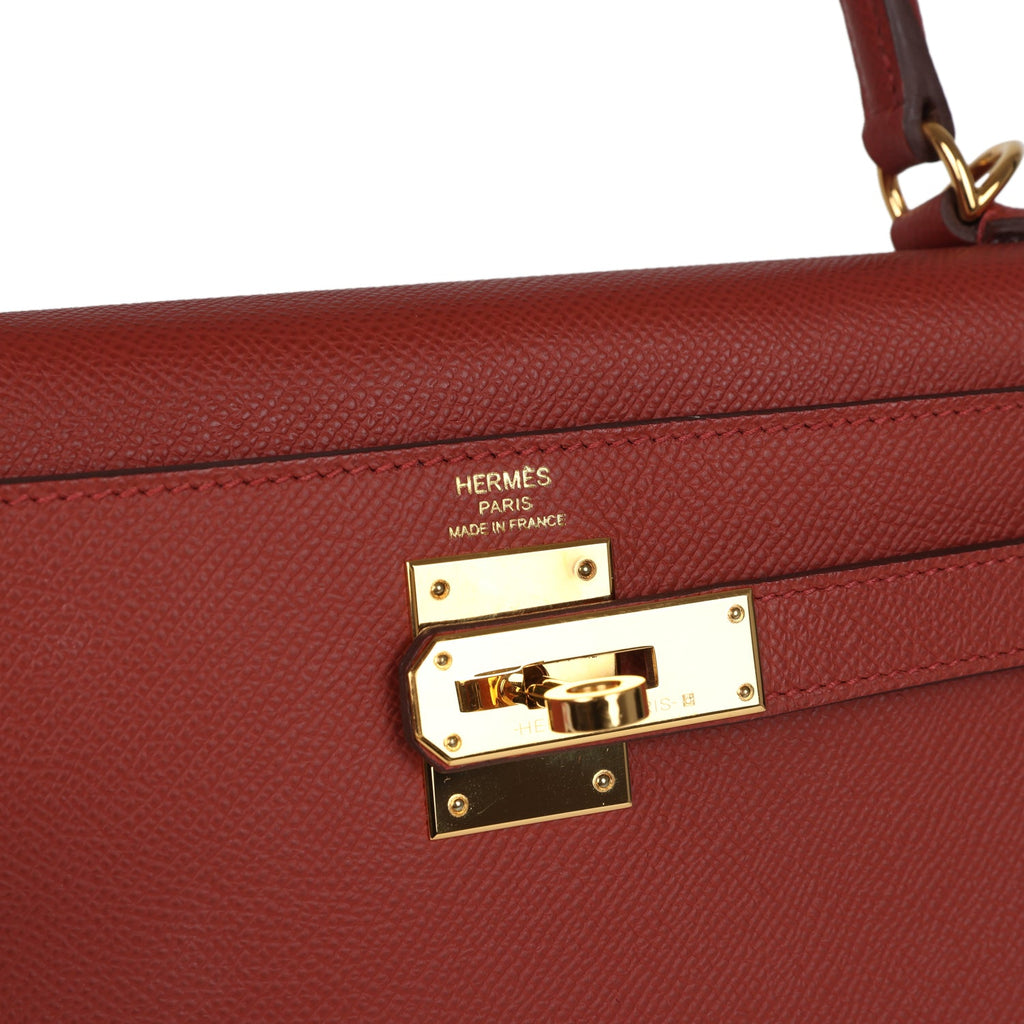 Pre-owned Hermes Kelly Sellier 28 Rouge Venitien Epsom Gold Hardware Shop for an authentic pre-owned Hermes Kelly Sellier 28 Rouge Venitien epsom with gold hardware in mint condition at Madison Avenue Couture.