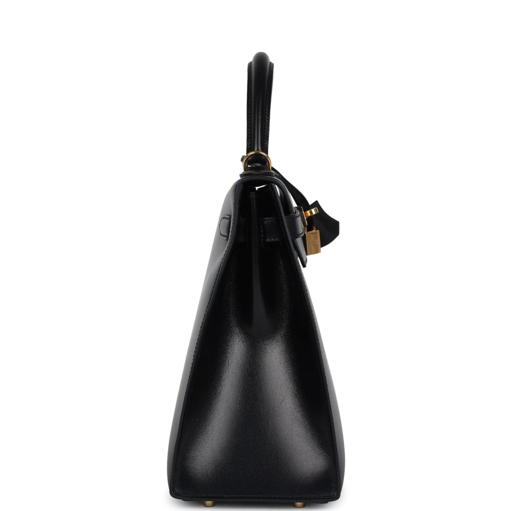 Pre-owned Hermes Kelly Sellier 32 Black Box Gold Hardware Shop for an authentic pre-owned Hermes Kelly 32 in Black box leather with gold hardware in excellent to mint condition at Madison Avenue Couture.
