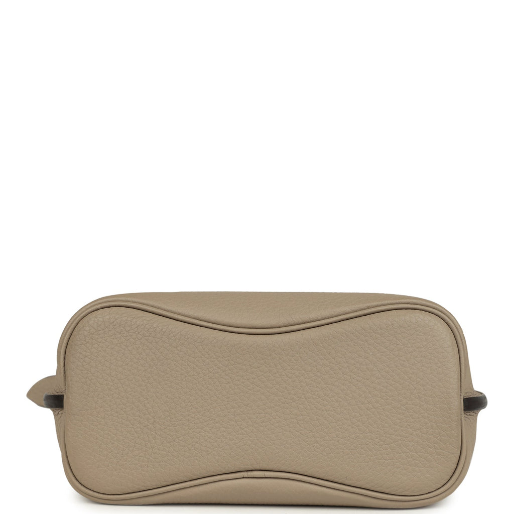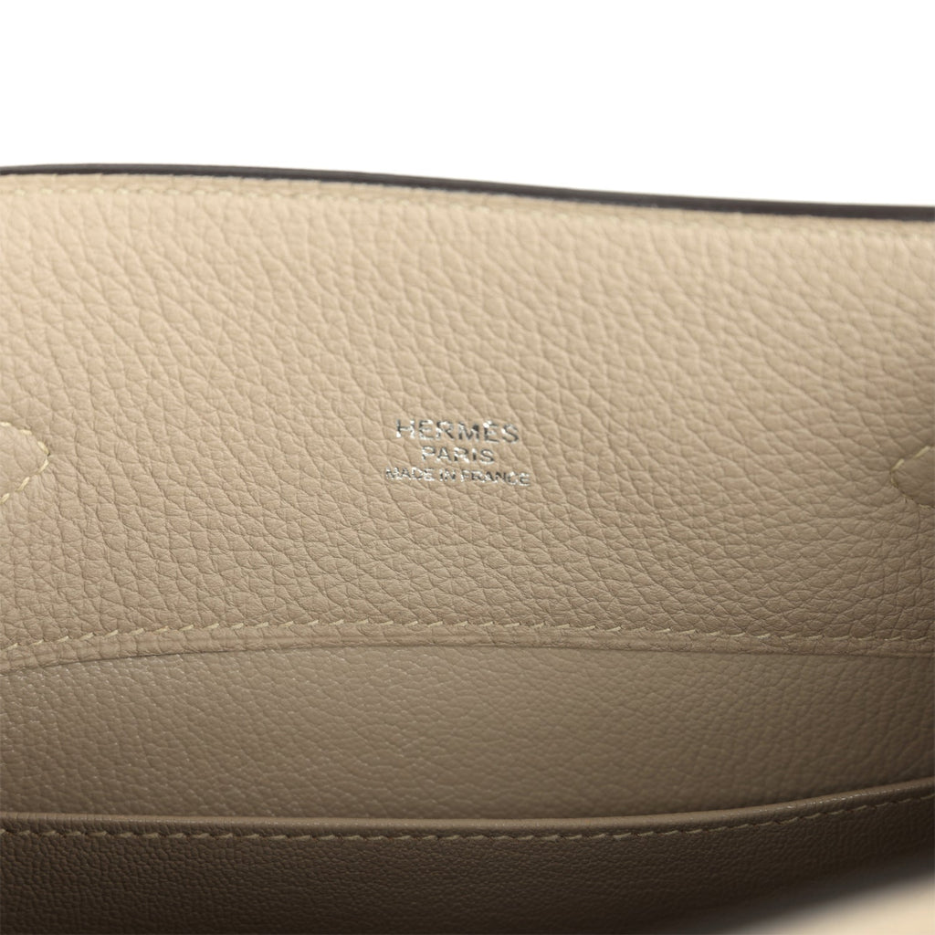 This Hermes So Kelly 22 bag is in Gris Tourterelle togo leather with palladium hardware, featuring tonal stitching, front pull straps that attach to a toggle, and an adjustable double loop shoulder strap with a palladium buckle.The interior is lined in Gris Tourterelle chevre leather and has one zip pocket with Hermes engraved pull; pocket on opposite side.Collection: T (2015) Origin: FranceCondition: Pre-owned; Excellent to Mint – This bag retains its shape structure. There is partial plastic on the hardware. The exposed hardware has hairline scratches present. The exterior leather has a notable scuff to the front bottom right corner and minor scuffing to the other bottom corners. The interior is clean with no signs of wear.Accompanied by: Hermes dustbag and feltMeasurements: 9″ width x 11.5″ height x 4″ depth; 13″-16″ adjustable handle drop