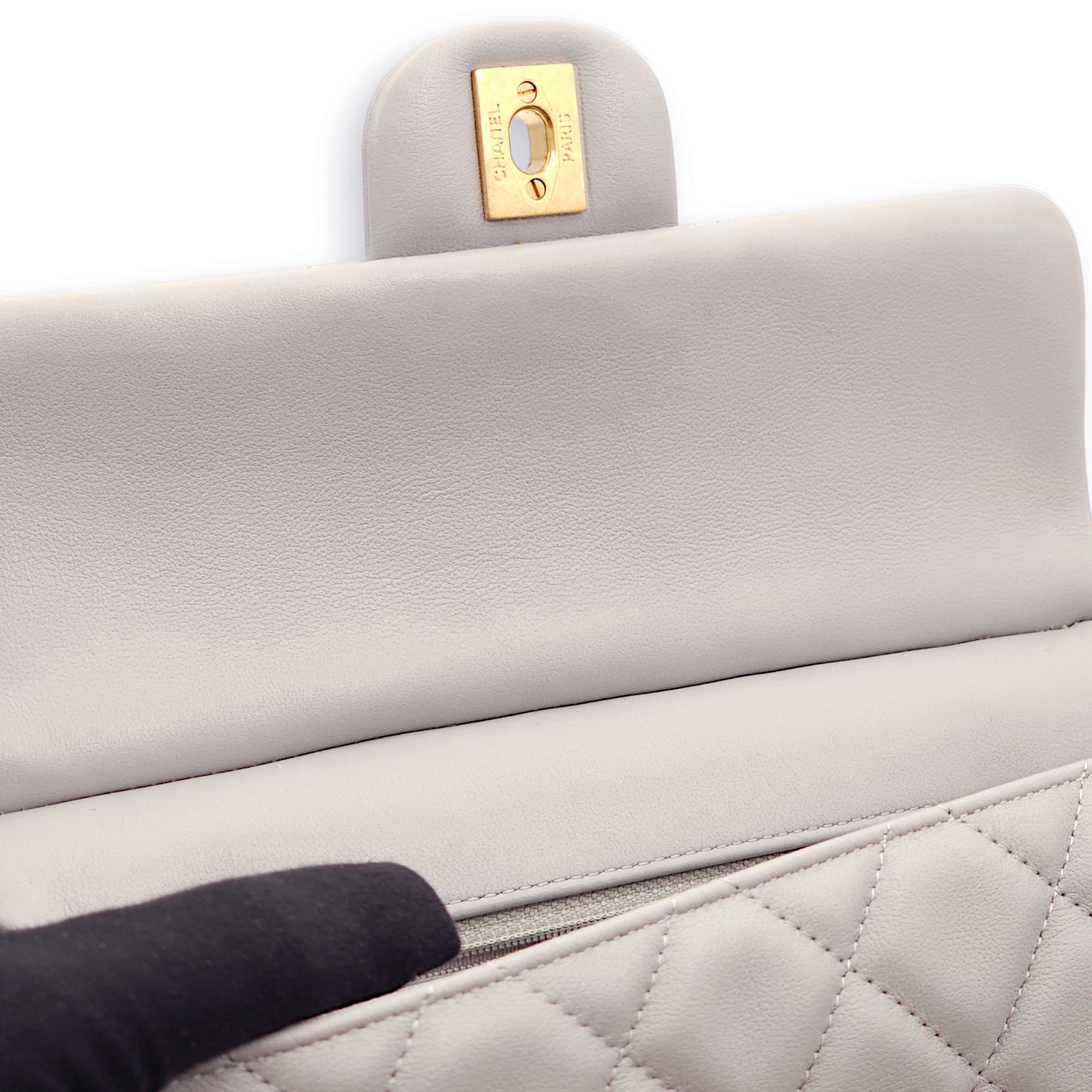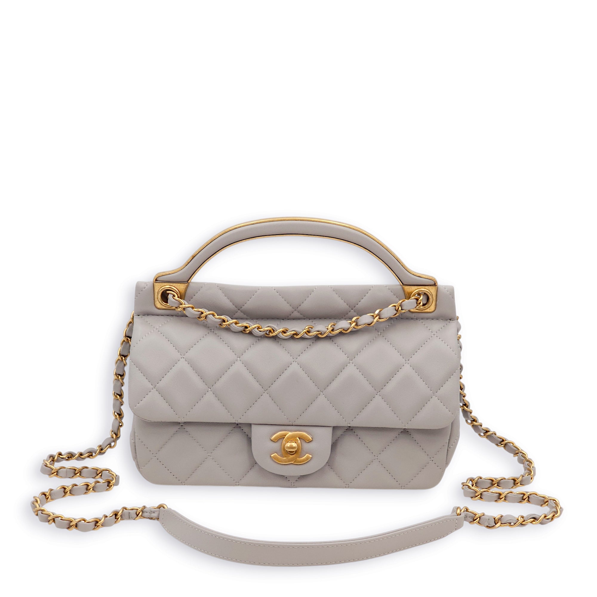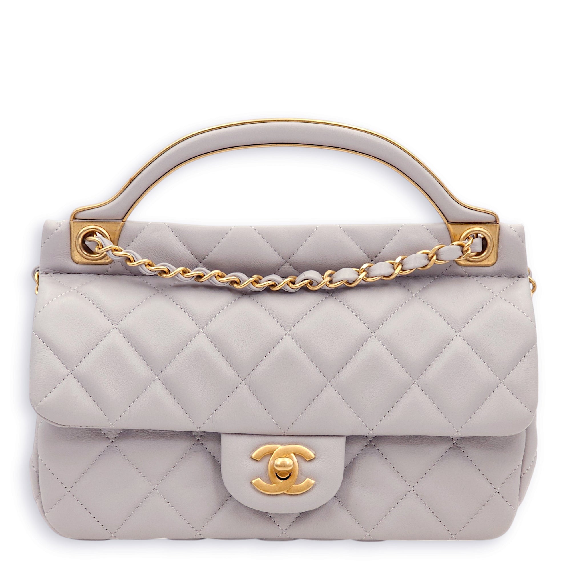 Be the first to review “Quilted Grey Top Handle Bag in Lambskin, Gold hardware”