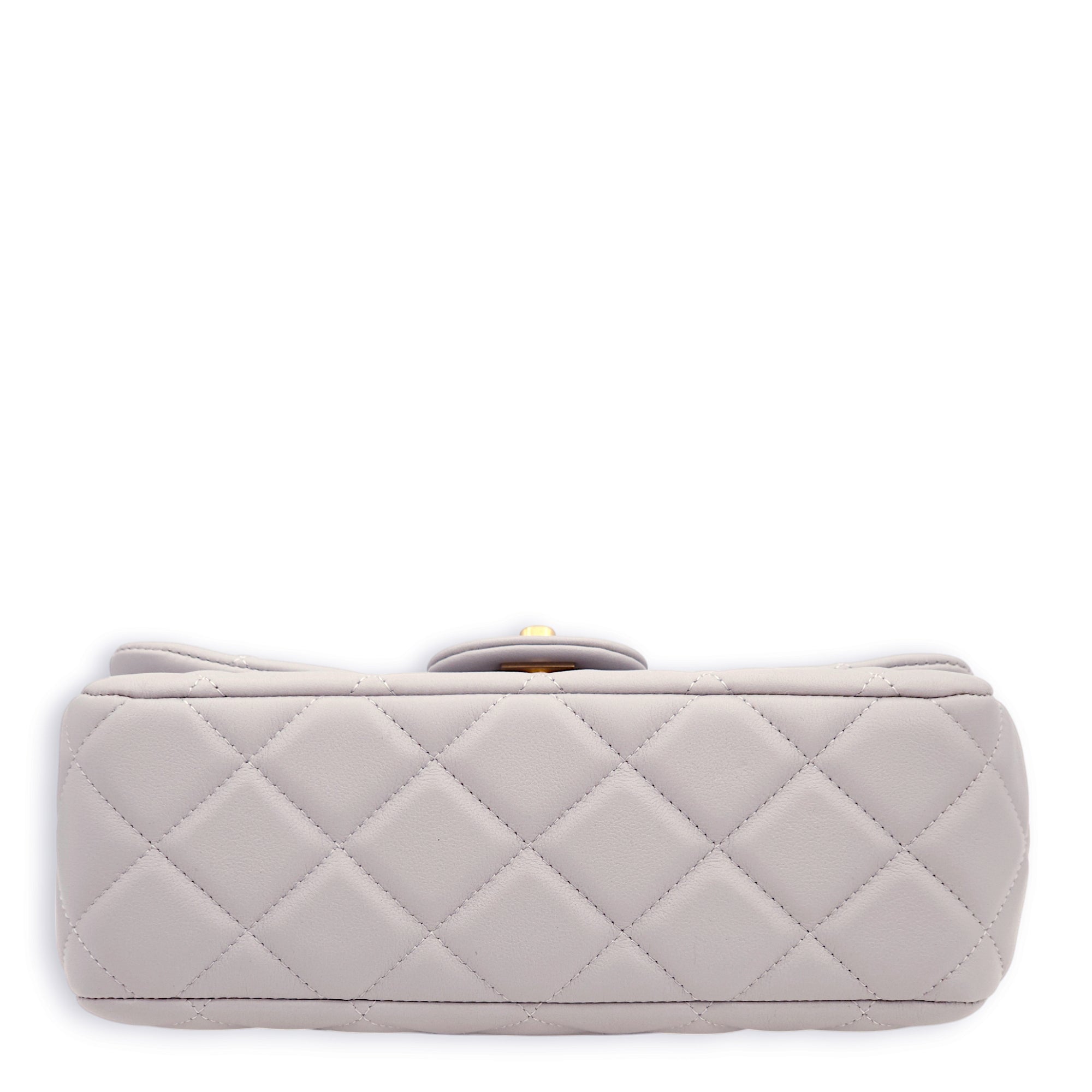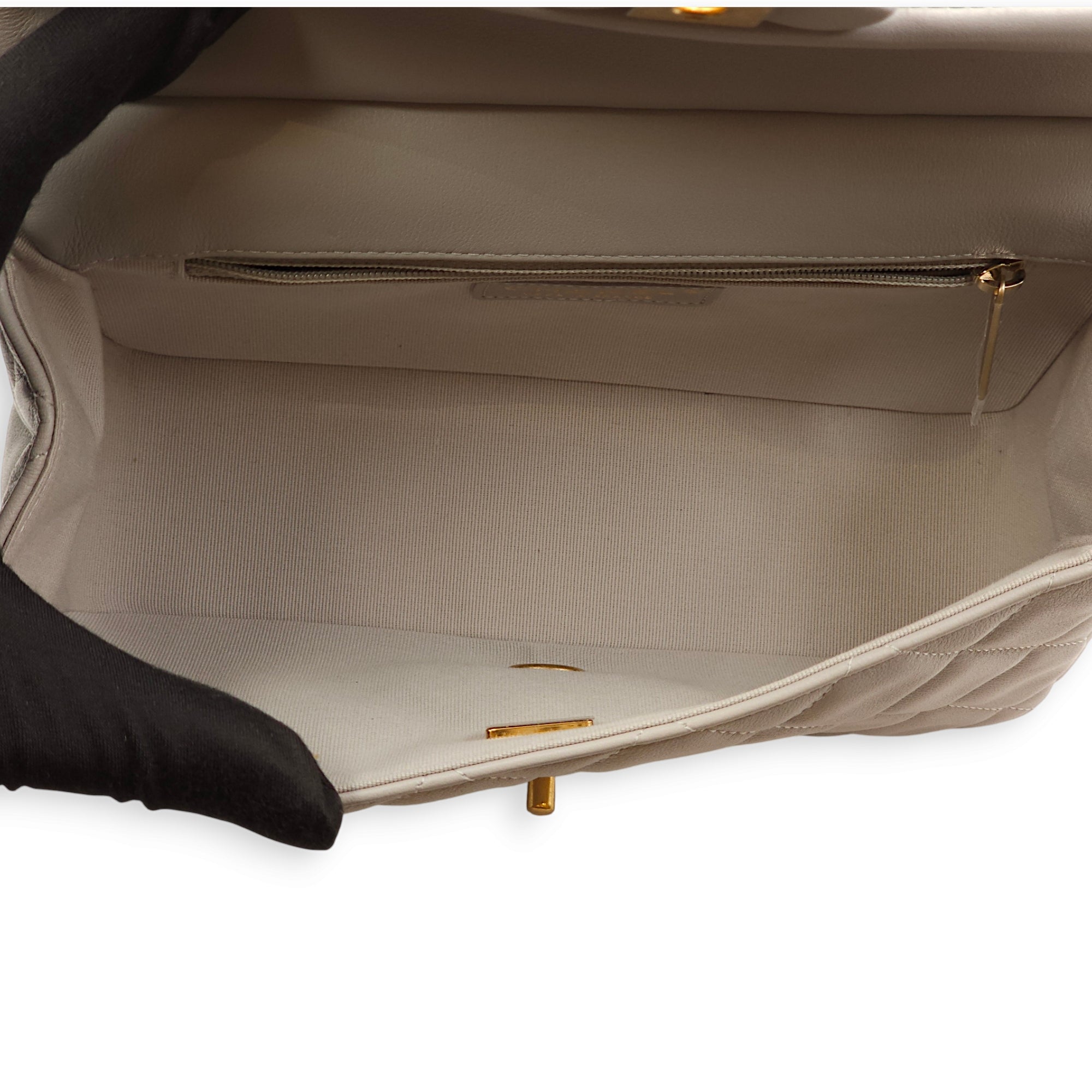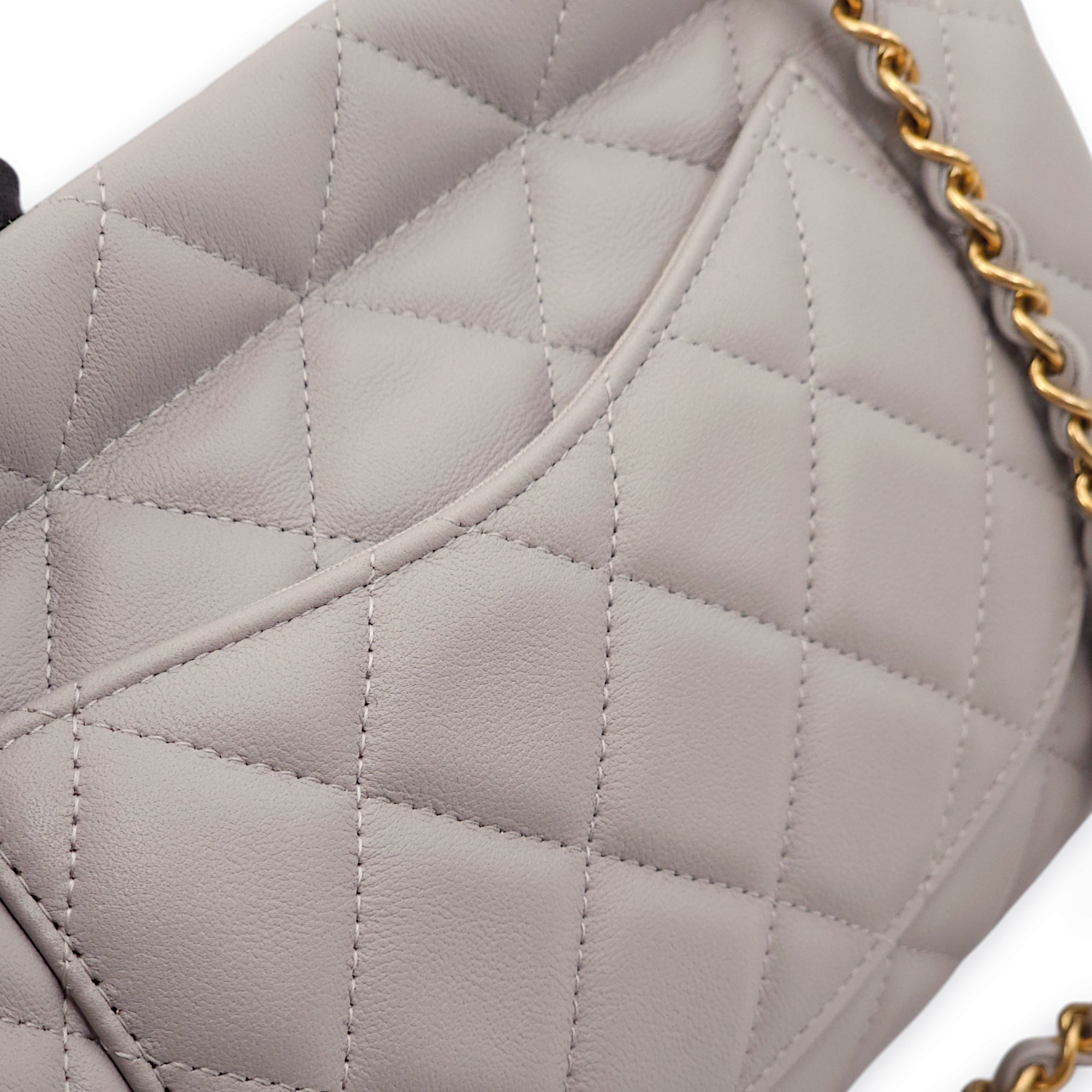 Be the first to review “Quilted Grey Top Handle Bag in Lambskin, Gold hardware”