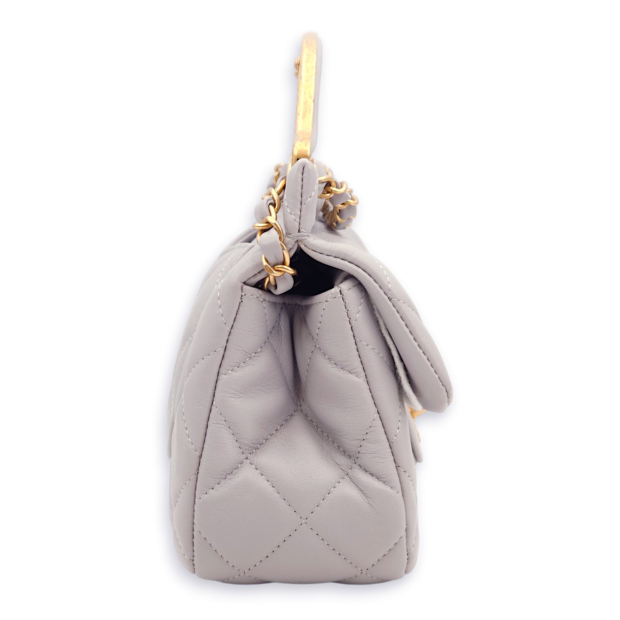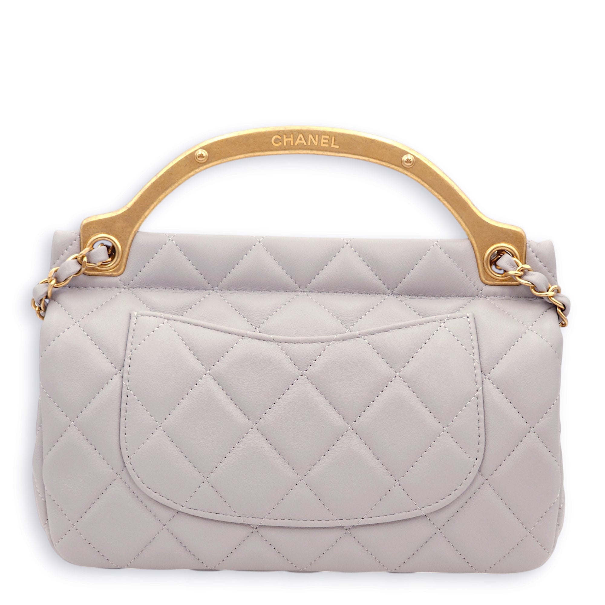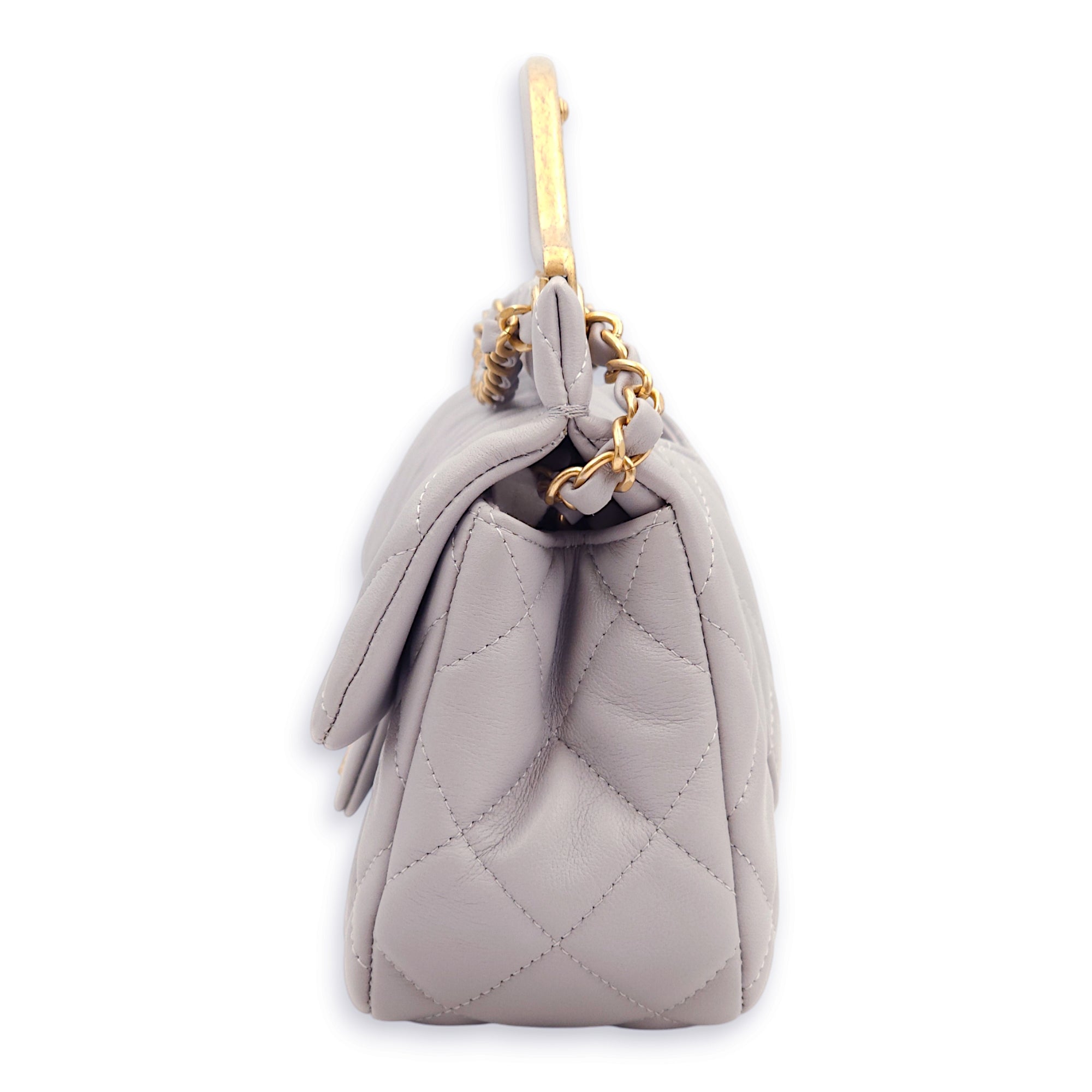 Quilted Grey Top Handle Bag in Lambskin, Gold hardware
