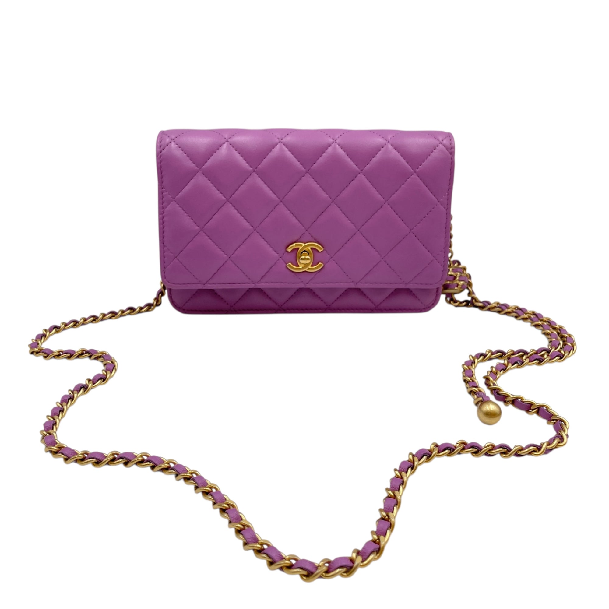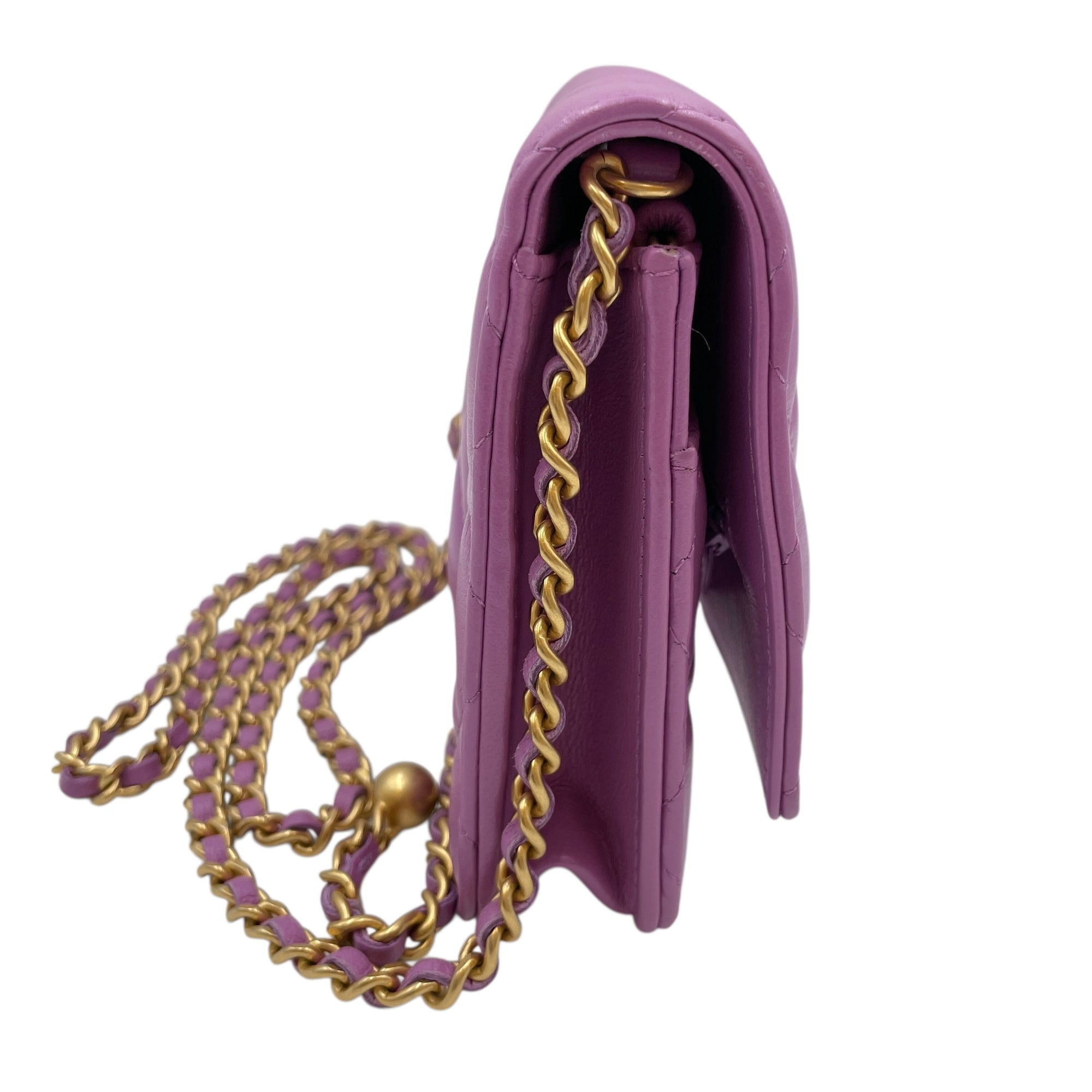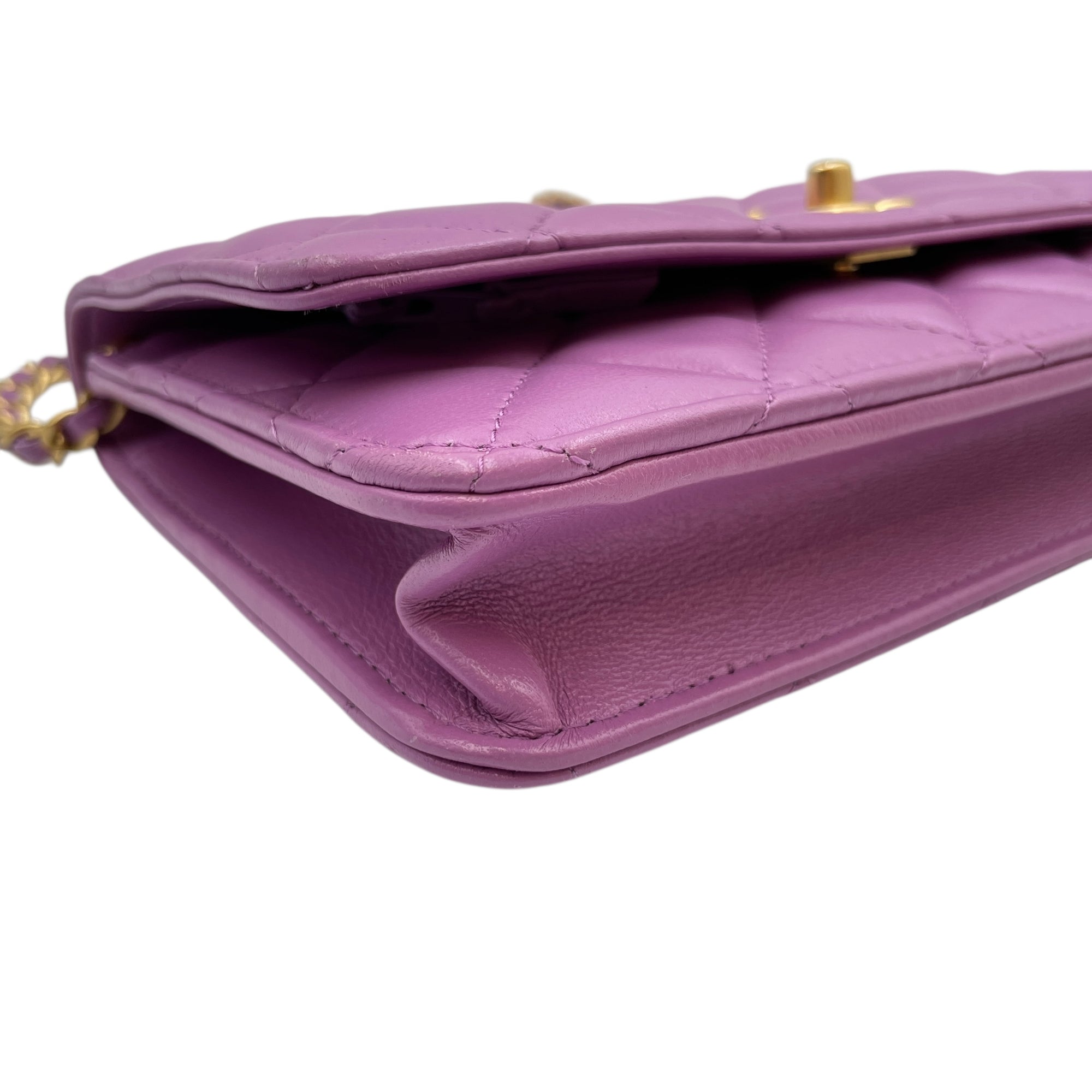 Quilted Purple Wallet on Chain with Pearl Crush in Lambskin, Gold hardware