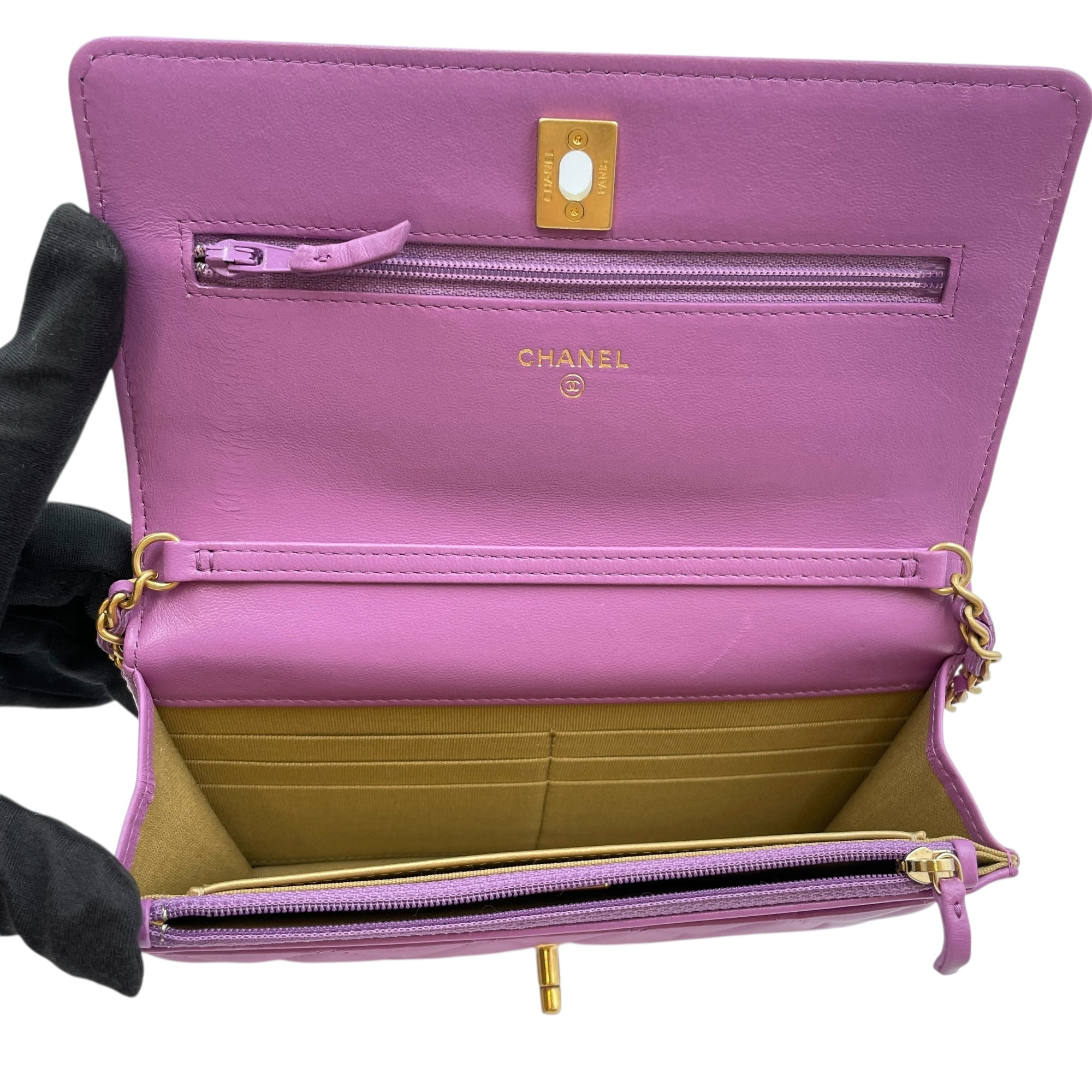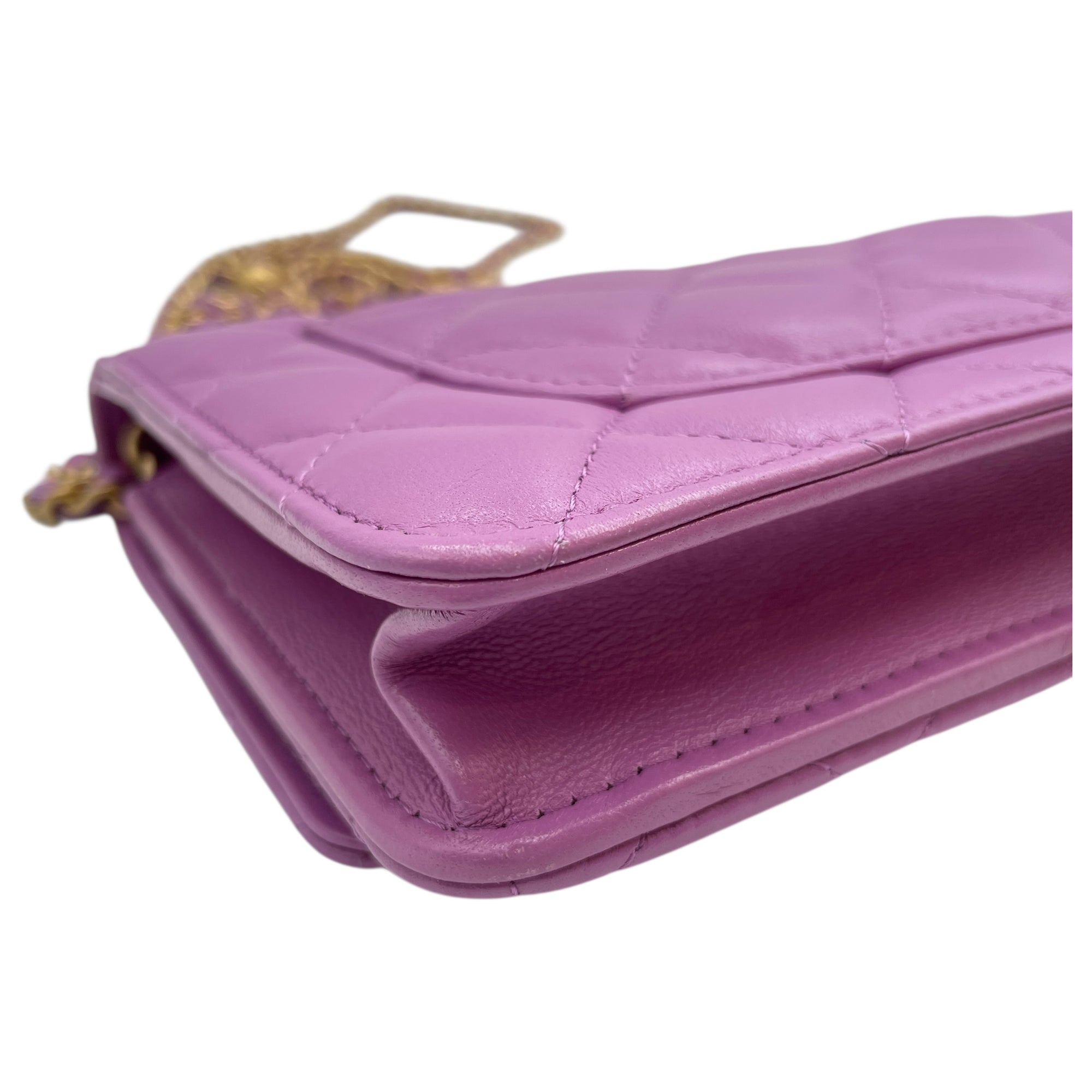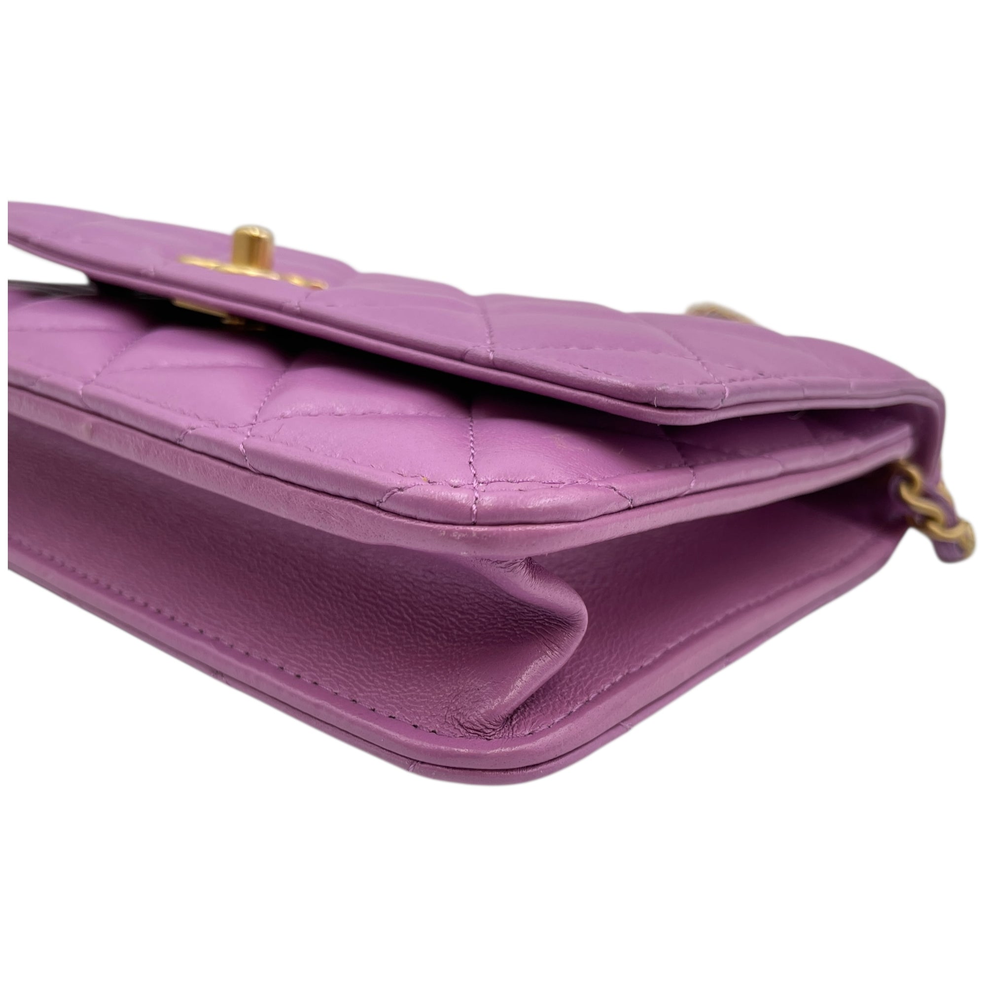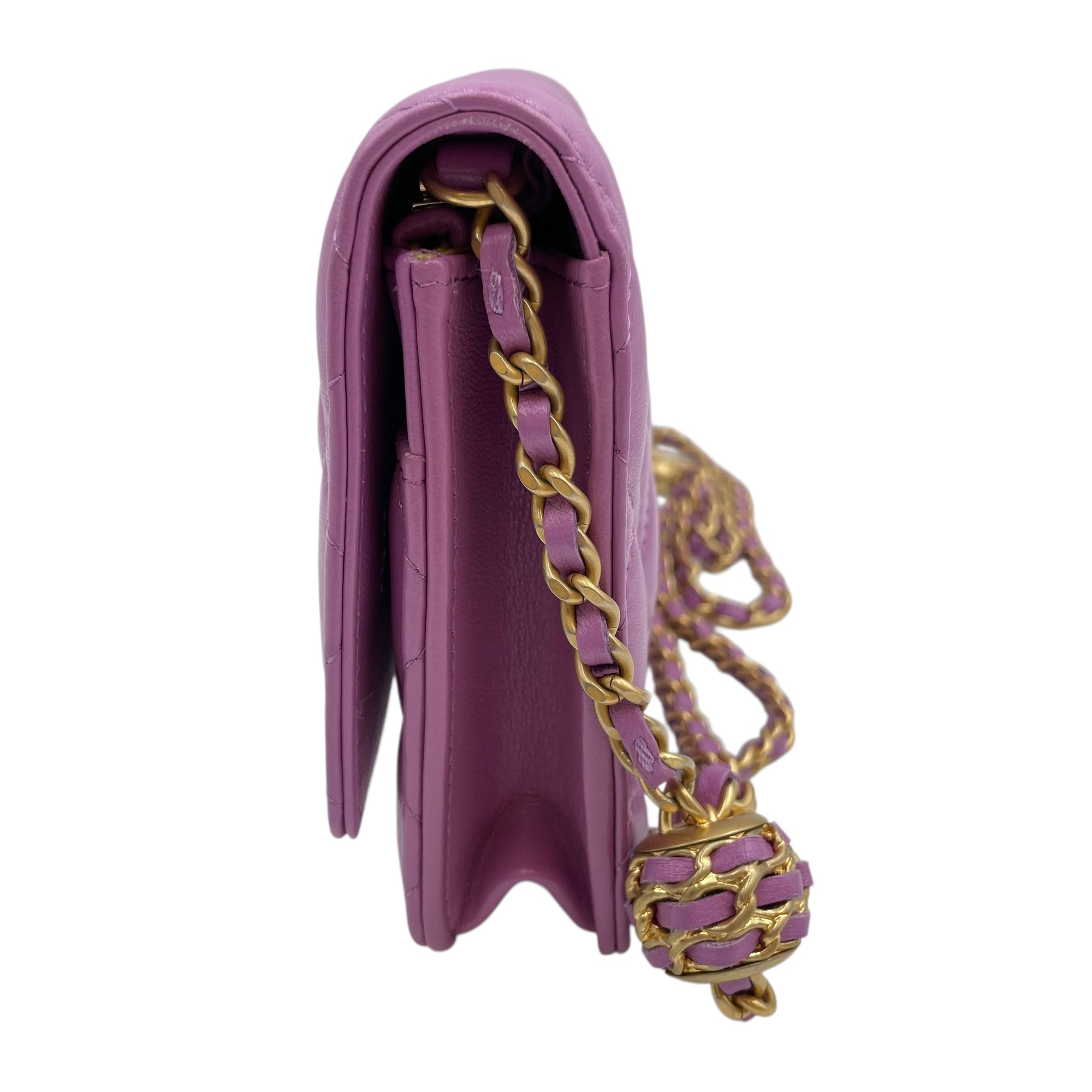 Quilted Purple Wallet on Chain with Pearl Crush in Lambskin, Gold hardware