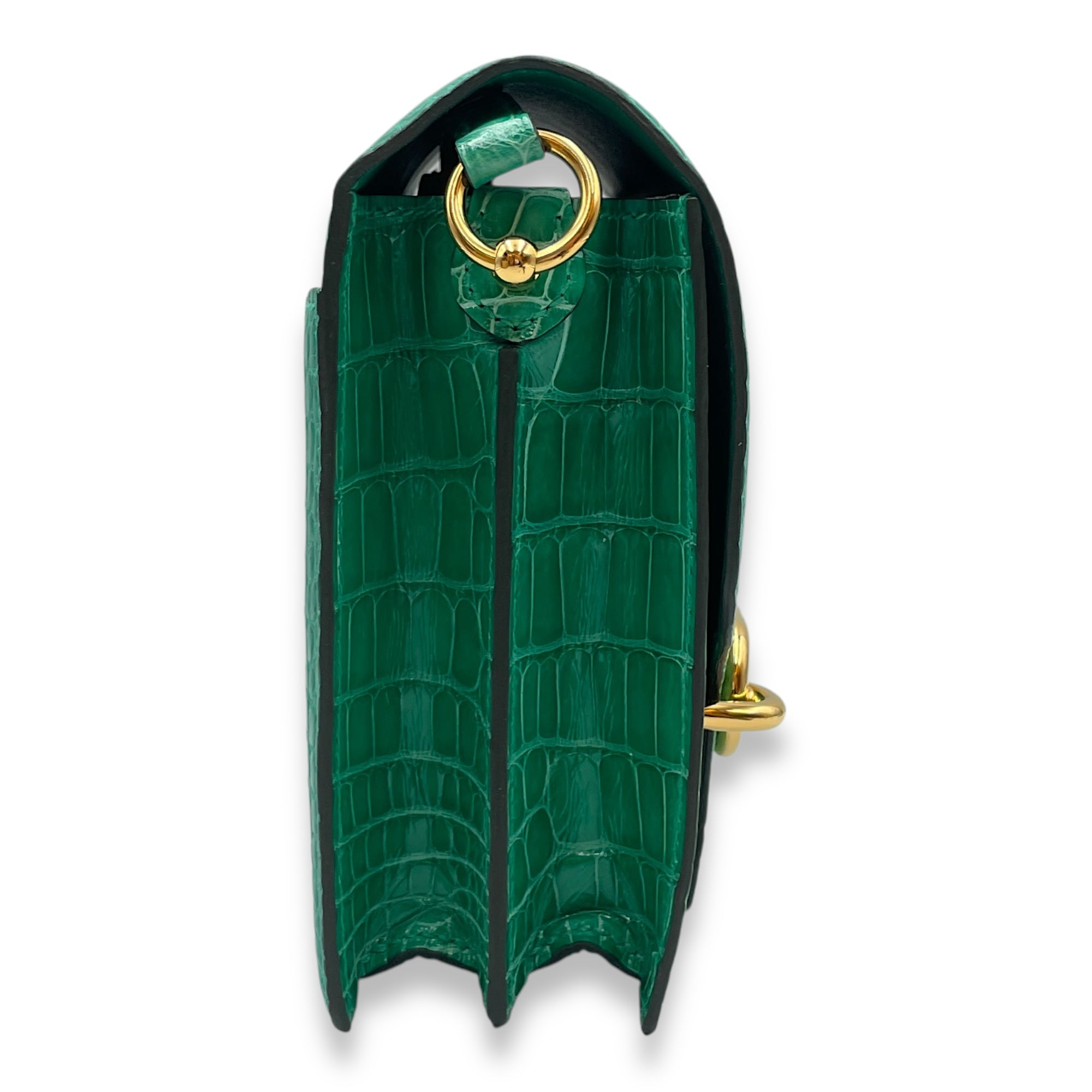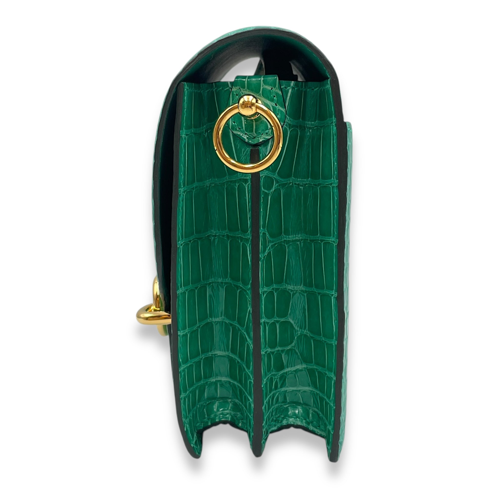 Roulis Mini Vert Jade in Matte Alligator/Shiny Alligator, Gold hardware