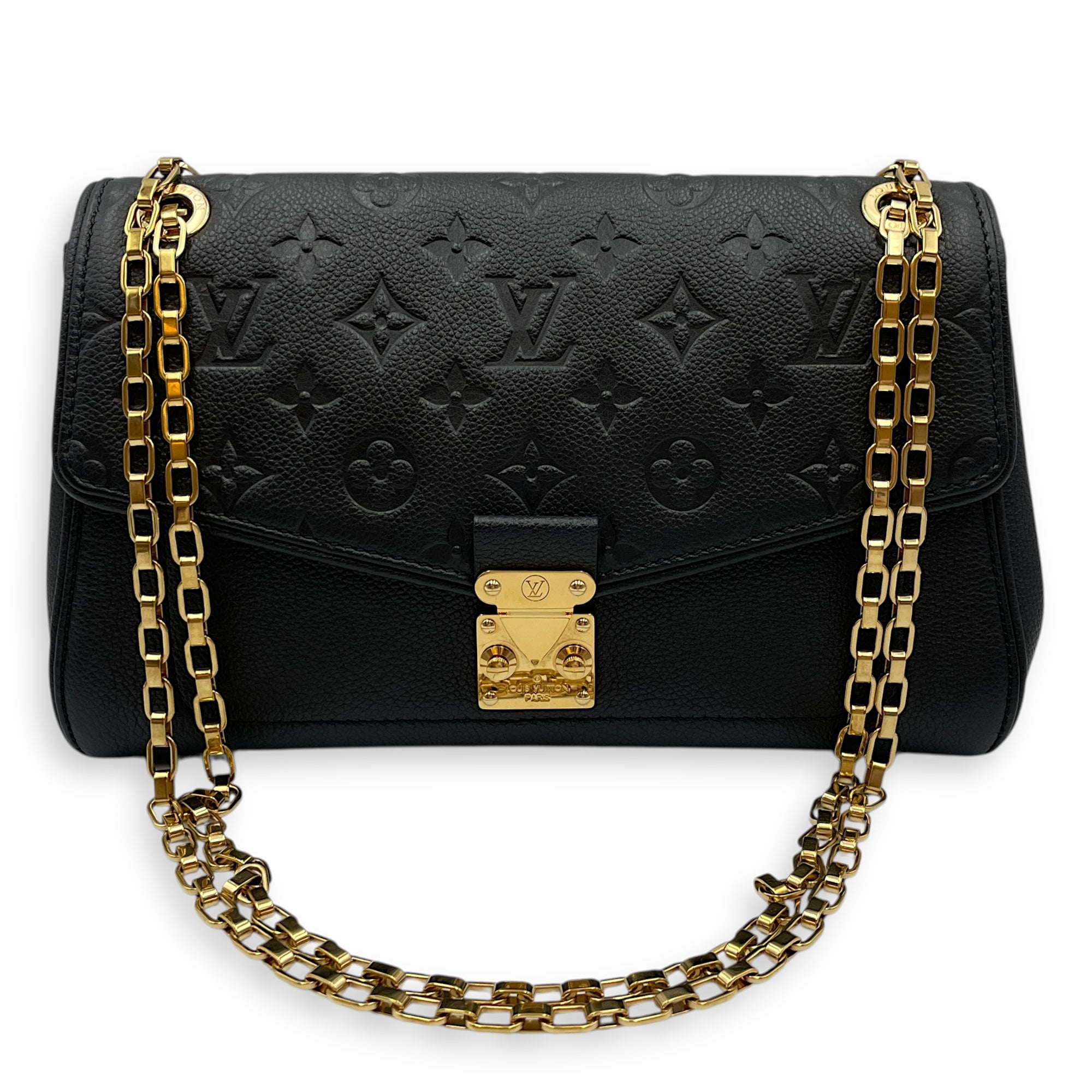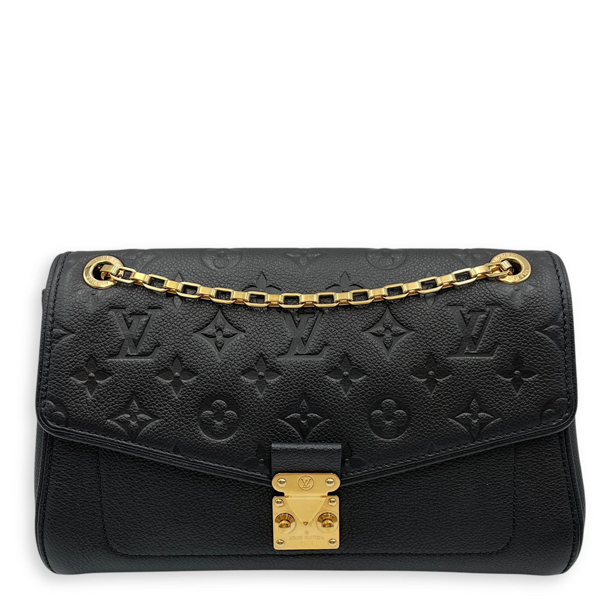 Saint Germain Black Shoulder Bag in Empriente Leather, Gold hardware