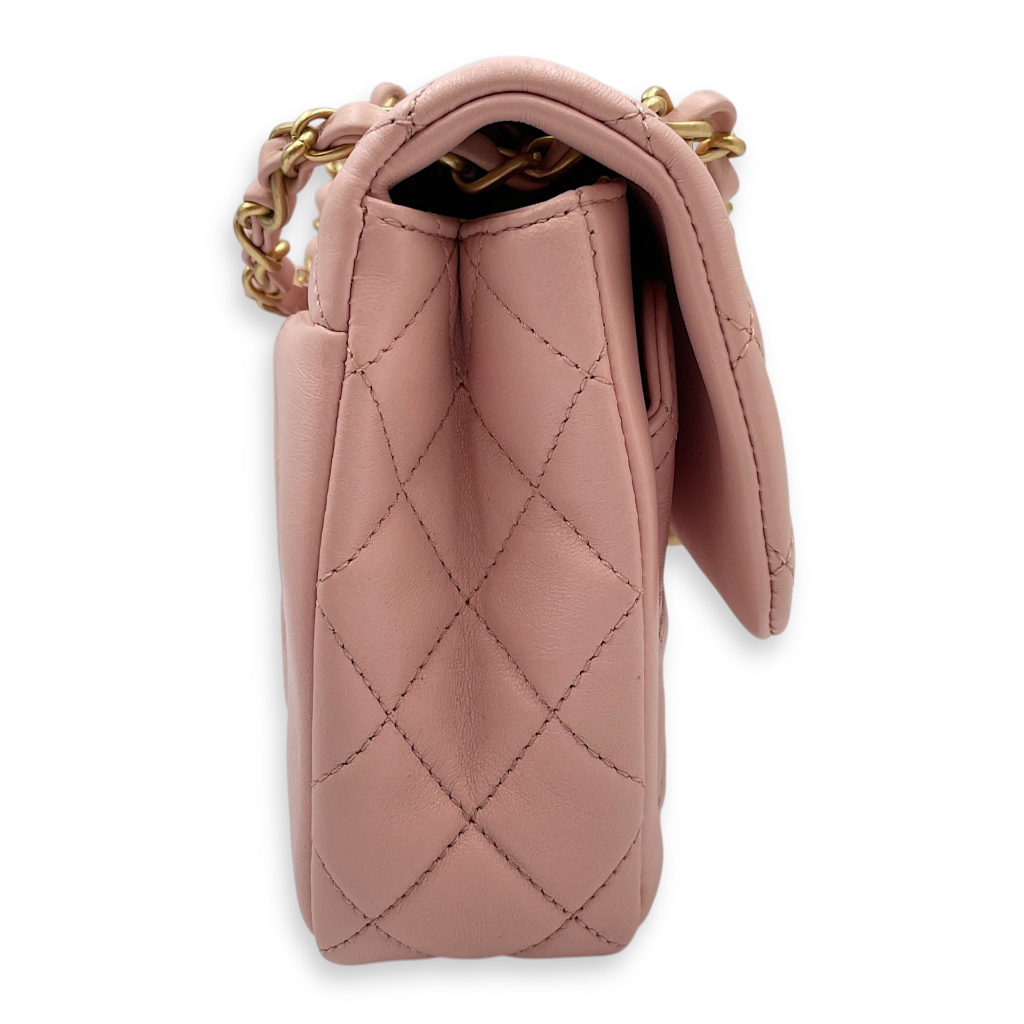 Seasonal Classic Flap with Front Pockets Pink Shoulder Bag in Lambskin, Gold hardware