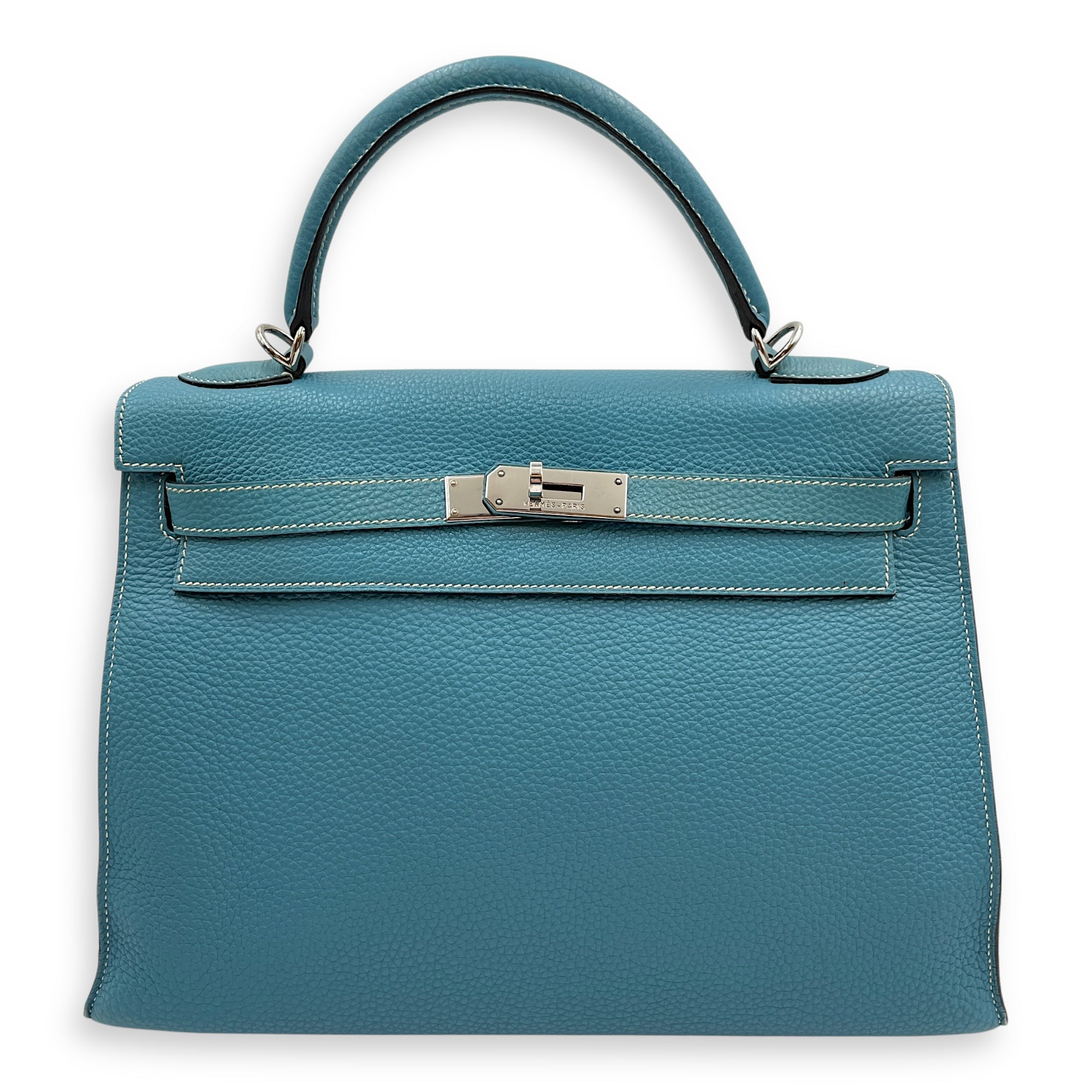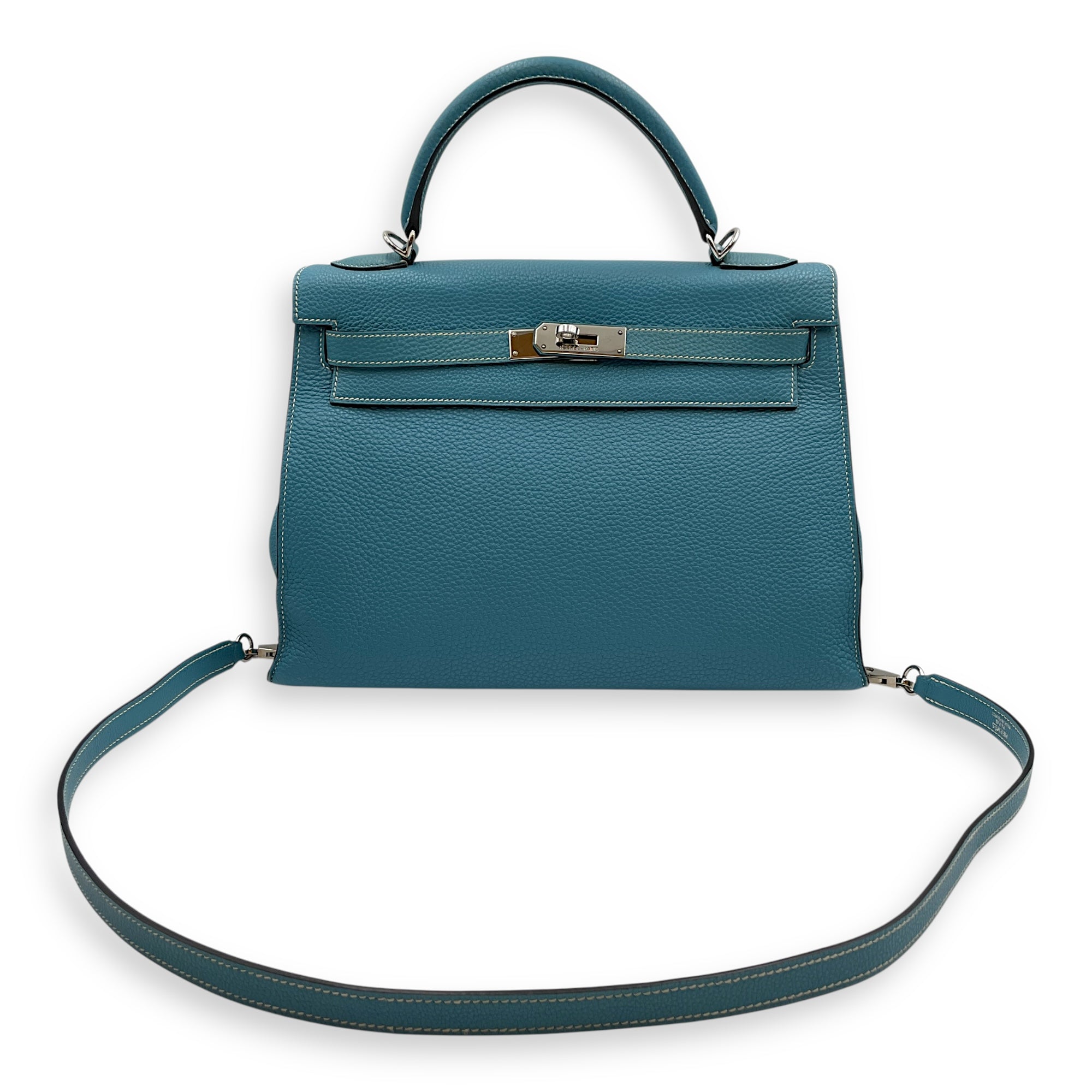 Sellier Kelly 32 Blue Jean in Togo, Palladium hardware