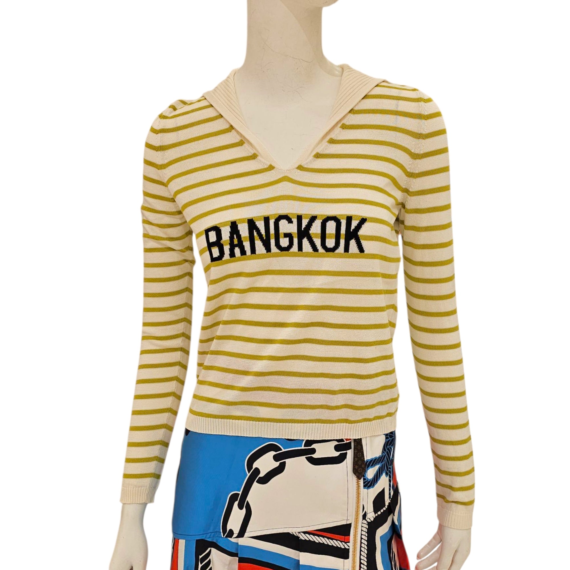 Where in Guangzhou, China can I buy a 1:1 replica Striped V-Neck Sweater 34 Green Ready-To-Wear in Silk