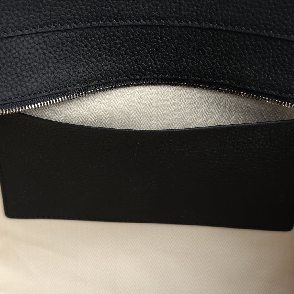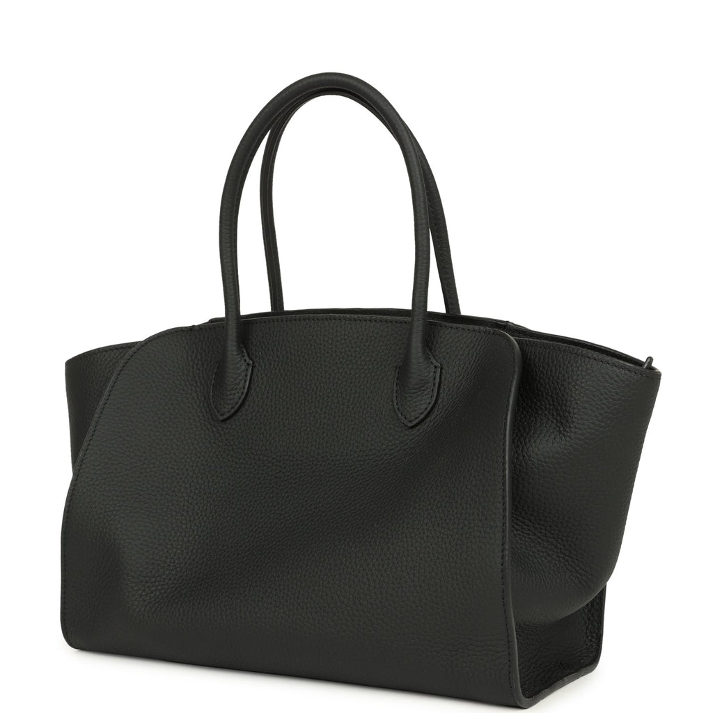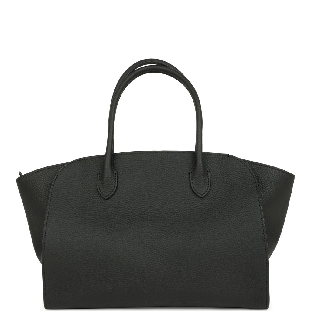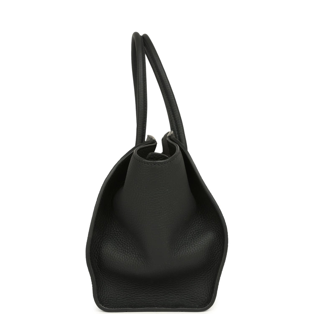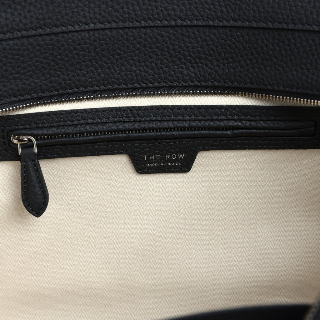The Row Marlo 12 Tote Bag Black Calfskin Silver Hardware Shop for an authentic The Row Marlo 12 Tote Bag is in Black grained calfskin leather with silver hardware in new and never worn condition at Madison Avenue Couture.