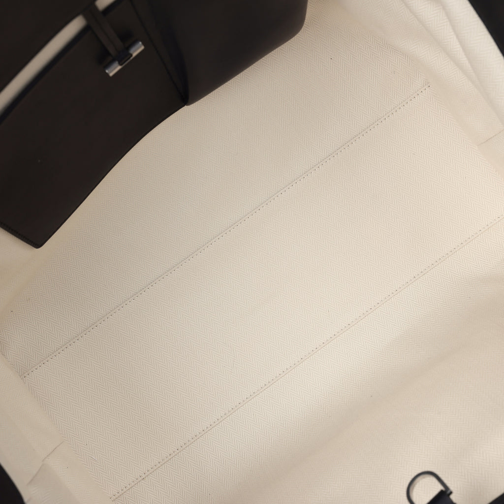 This Marlo Tote Bag is in black saddle leather with silver hardware, featuring tonal stitching, tubular top handles, gusseted side panels, and an interior toggle closure.The interior is lined in black saddle leather and beige canvas has two interior card slots and one interior zip pocket.Origin: ItalyCondition: New and never worn Accompanied by: Dustbag, felt, carebookMeasurements: 16.5″ x 13″ x 7″; Top Handles: 8″