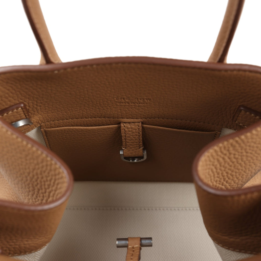 The Row Soft Margaux 10 Bag Sandpit Calfskin Silver Hardware Shop for an authentic The Row Soft Margaux 10 Bag is in Sandpit calfskin leather with silver hardware in new and never worn condition at Madison Avenue Couture.