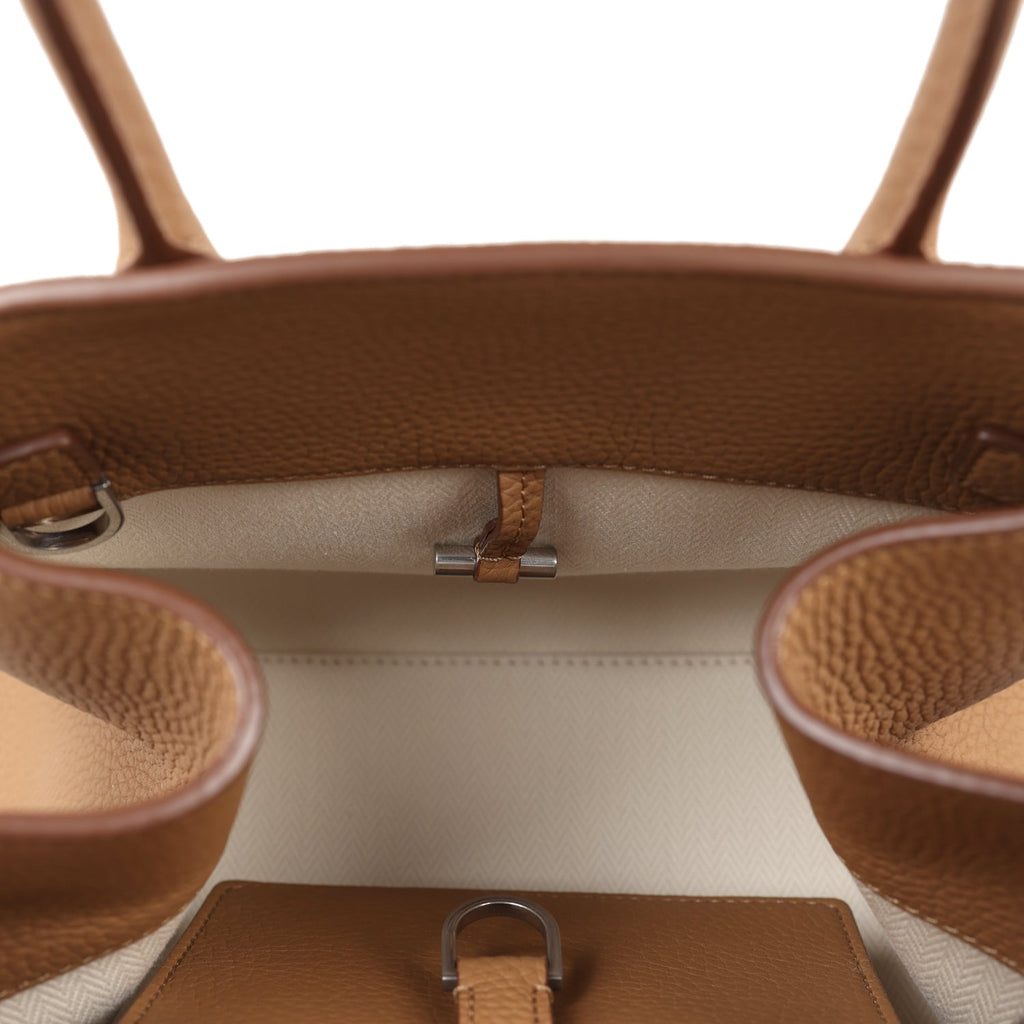 This Soft Margaux 10 Top Handle Bag is in Sandpit matte grained calfskin leather with silver hardware, featuring tonal stitching, double rolled handles, adjustable belted gusseted side panels, a removable leather shoulder strap, and an interior toggle closure.The interior is lined in Sandpit matte grained calfskin leather and beige canvas and has one slip pocket.Origin: ItalyCondition: New and never worn (plastic on hardware)Accompanied by: Dustbag, removable shoulder strap, carebookMeasurements: 10″ x 7.5″ x 7″; handle drop: 4.5″ ; shoulder strap drop (approx.): 21″