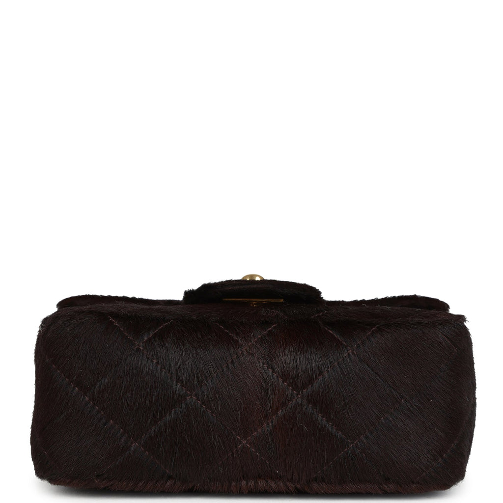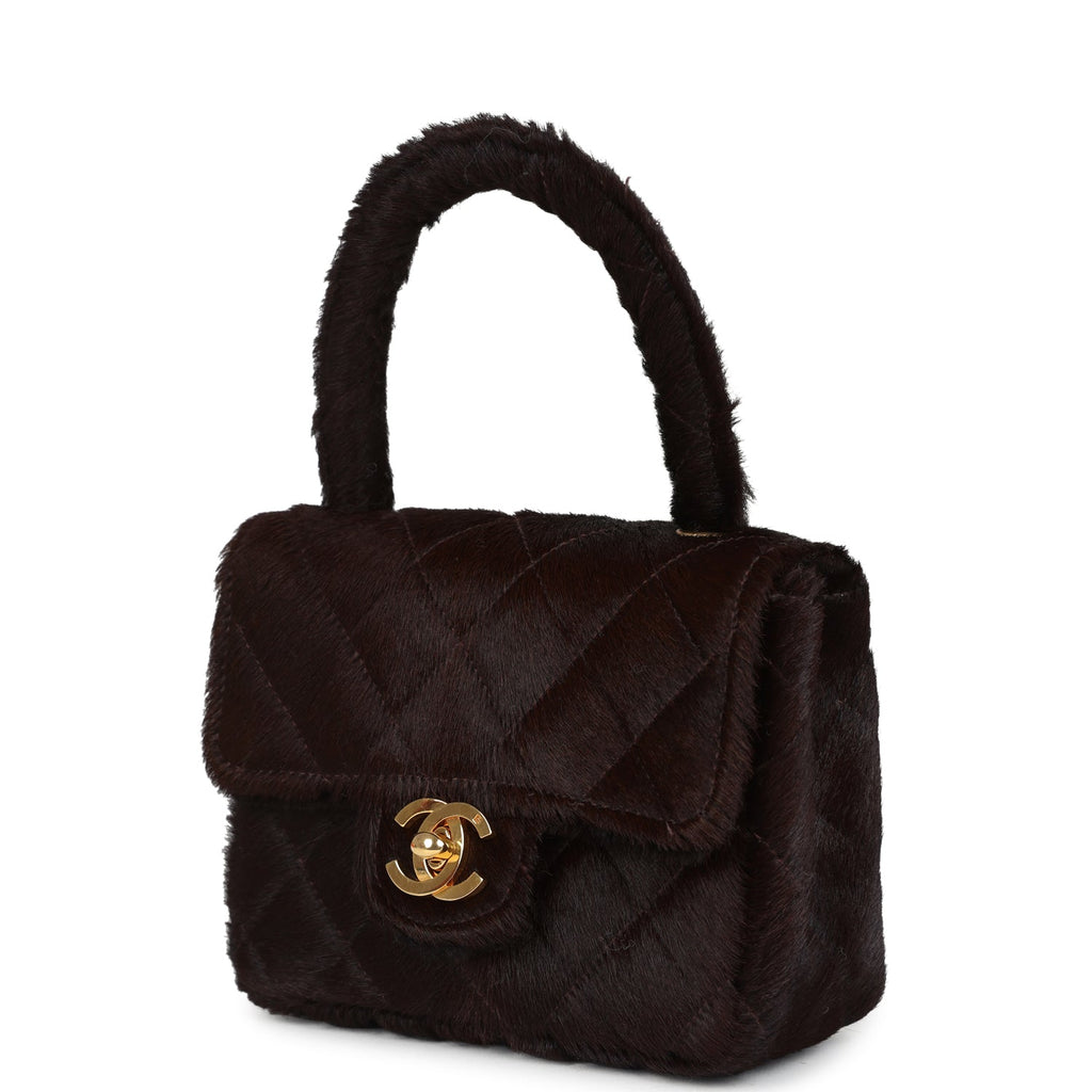 Vintage Chanel Micro Kelly Child Dark Brown Pony Hair Gold Hardware Shop for an authentic vintage Chanel Micro Kelly Child Flap Bag in dark brown pony hair with gold hardware in mint condition at Madison Avenue Couture.