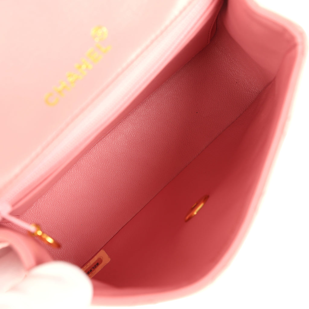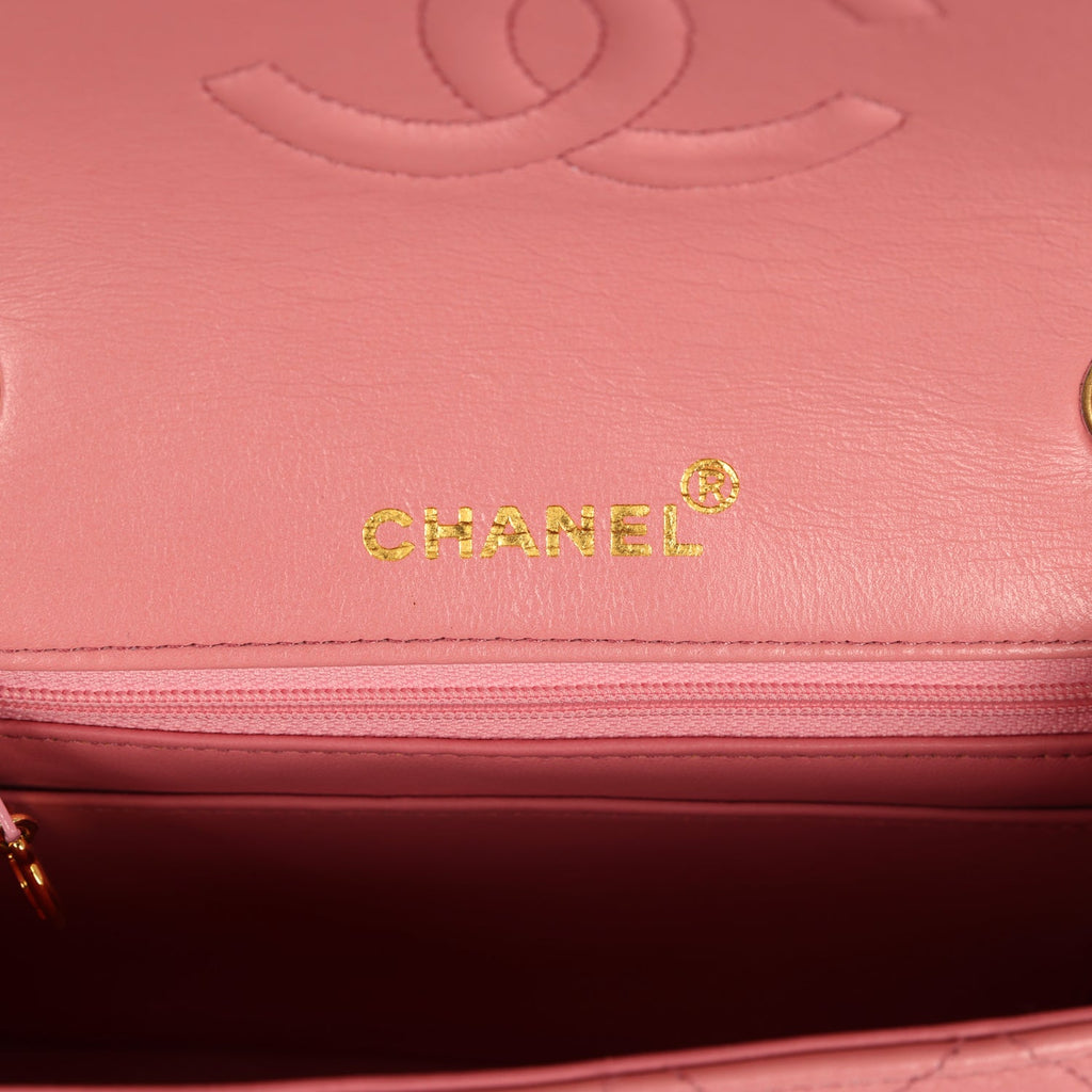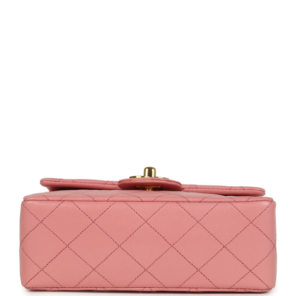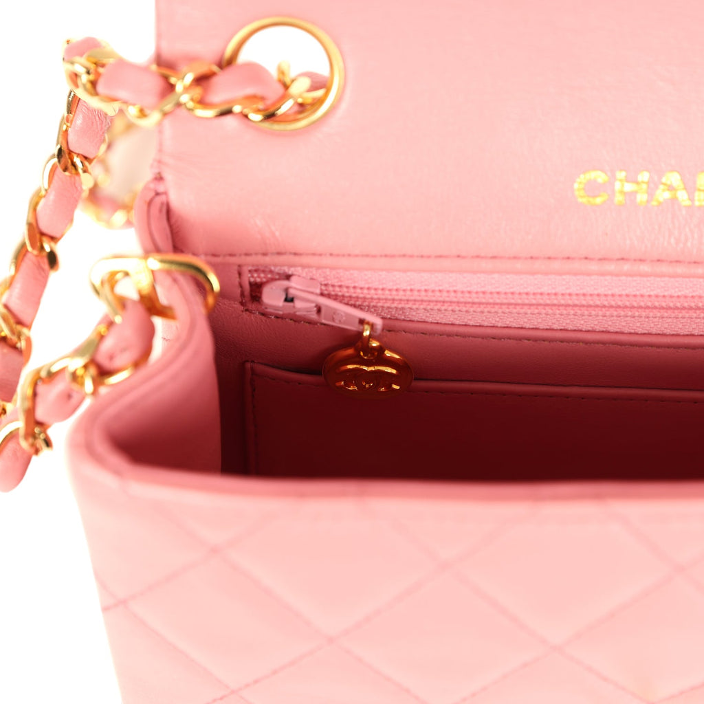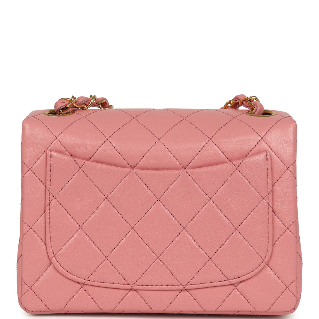 Vintage Chanel Mini Square Flap Dark Pink Lambskin Gold Hardware Shop for an authentic vintage Chanel Mini Classic Square Flap in dark pink lambskin with gold hardware in excellent to mint condition at Madison Avenue Couture.