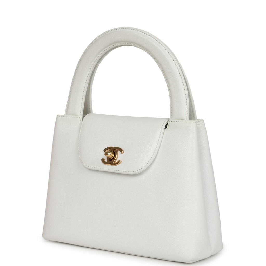 Vintage Chanel Small Kelly White Caviar Gold Hardware Shop for an authentic vintage Chanel Small Kelly in white caviar with gold hardware in excellent condition at Madison Avenue Couture.