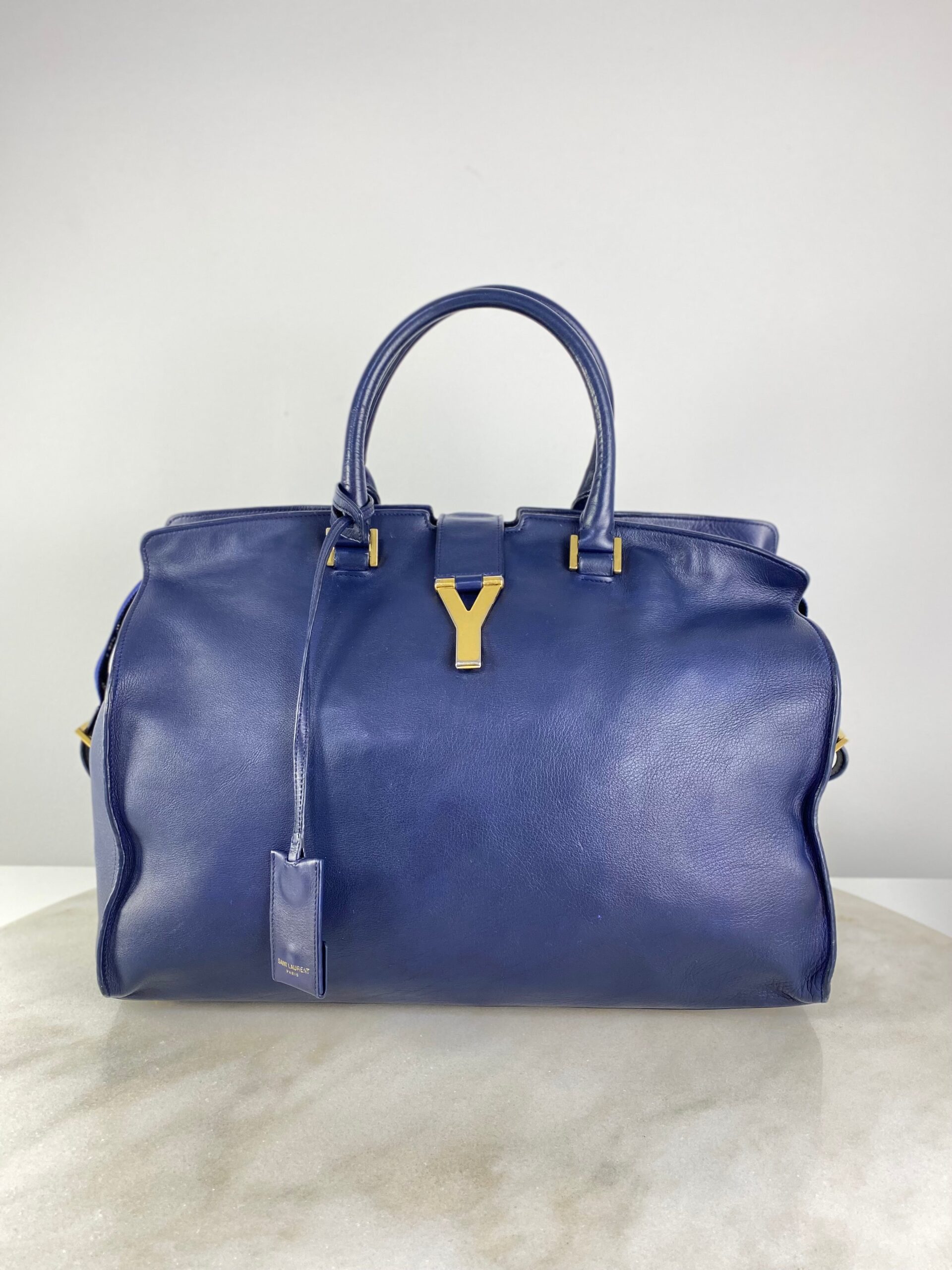 YSL Blue ChYc Large Cabas Y Lock Tote Bag
