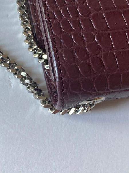 YSL Burgundy Croco Embossed Kate Tassel Small Bag