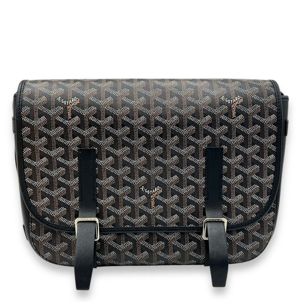 Belvedere Messenger MM Black in Coated Canvas, Silver hardware