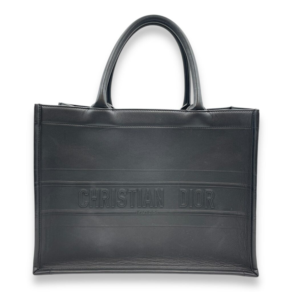 Book Tote Medium Black Top Handle Bag in Calfskin