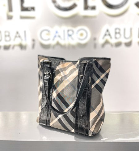 Burberry Black Ellers Satchel Beat Check Tote Bag